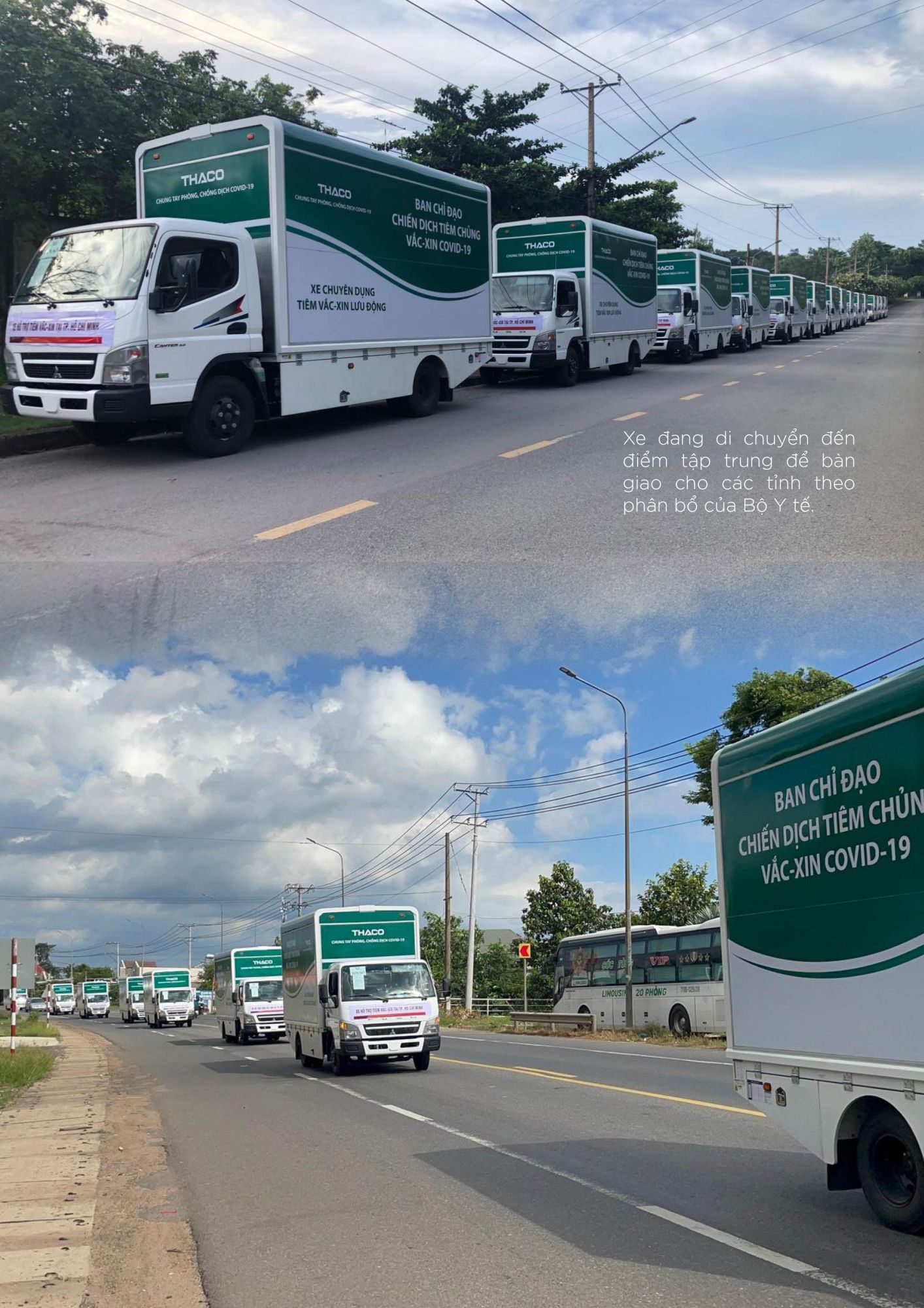 Tại Lễ phát động triển khai chiến dịch tiêm chủng vắc xin phòng Covid-19 toàn quốc, THACO đã trao tặng 126 xe chuyên dụng gồm 63 xe chuyên dụng vận chuyển vắc xin và 63 xe chuyên dụng phục vụ tiêm chủng lưu động.