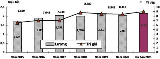 Link Đăng Nhập 5533Win thủy sản của Việt Nam năm 2015 – 2021 (ĐVT: Triệu tấn – Tỷ USD. Năm 2021 là dự báo)