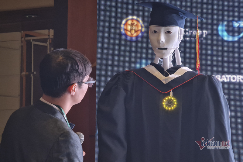 Tại Diễn đàn Giáo dục và Triển lãm học đường 4.0 (EDU 4.0), nhiều người đã cảm thấy bất ngờ trước sự xuất hiện của một nhân vật hết sức đặc biệt. Đó là một robot tích hợp trí thông minh nhân tạo với tên gọi Trí Nhân, là kết quả nghiên cứu của một startup Việt Open Classroom Team. Ảnh: Vietnamnet