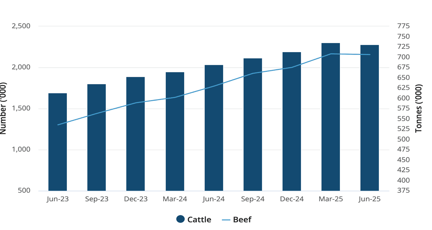 Số liệu thống kê của Úc về sản lượng chế biến gia súc, gia cầm trong quý 2/2025 chỉ ra: