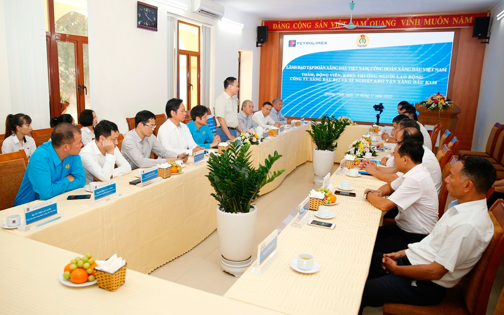 Kết thúc chương trình làm việc, lãnh đạo Tập đoàn và Công đoàn Xăng dầu Việt Nam đã tới thăm hỏi, động viên và trao quà cho công nhân lao động trực tiếp làm công tác xuất hàng tại Bến xuất Xăng dầu K130
