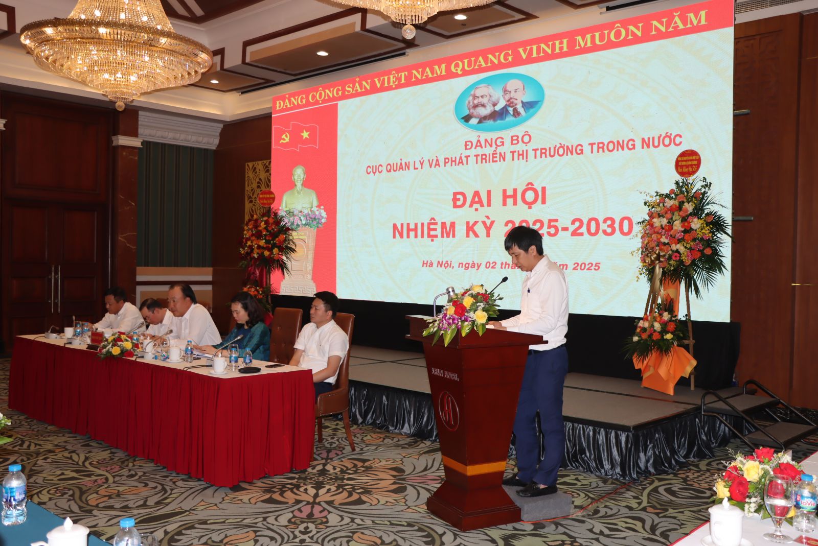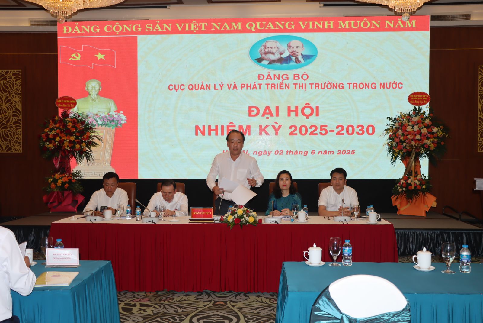 Đại hội Đảng bộ Cục Quản lý và Phát triển thị trường trong nước nhiệm kỳ 2025 - 2030 Ngày 2/6/2025, Đại hội Đảng bộ Cục Quản lý và Phát triển thị trường trong nước nhiệm kỳ 2025 - 2030 với phương châm "Đoàn kết - Dân chủ - Kỷ cương - Đột phá" đã được tổ chức thành công, với sự tham dự của 117 đảng viên được triệu tập. Đây là dấu mốc chính trị quan trọng, thể hiện quyết tâm 33ưin được xếp hạng cao nhất Đảng bộ trong sạch, vững mạnh, nâng cao năng lực lãnh đạo, sức chiến đấu và hiệu quả thực thi nhiệm vụ chính trị trong giai đoạn mới.