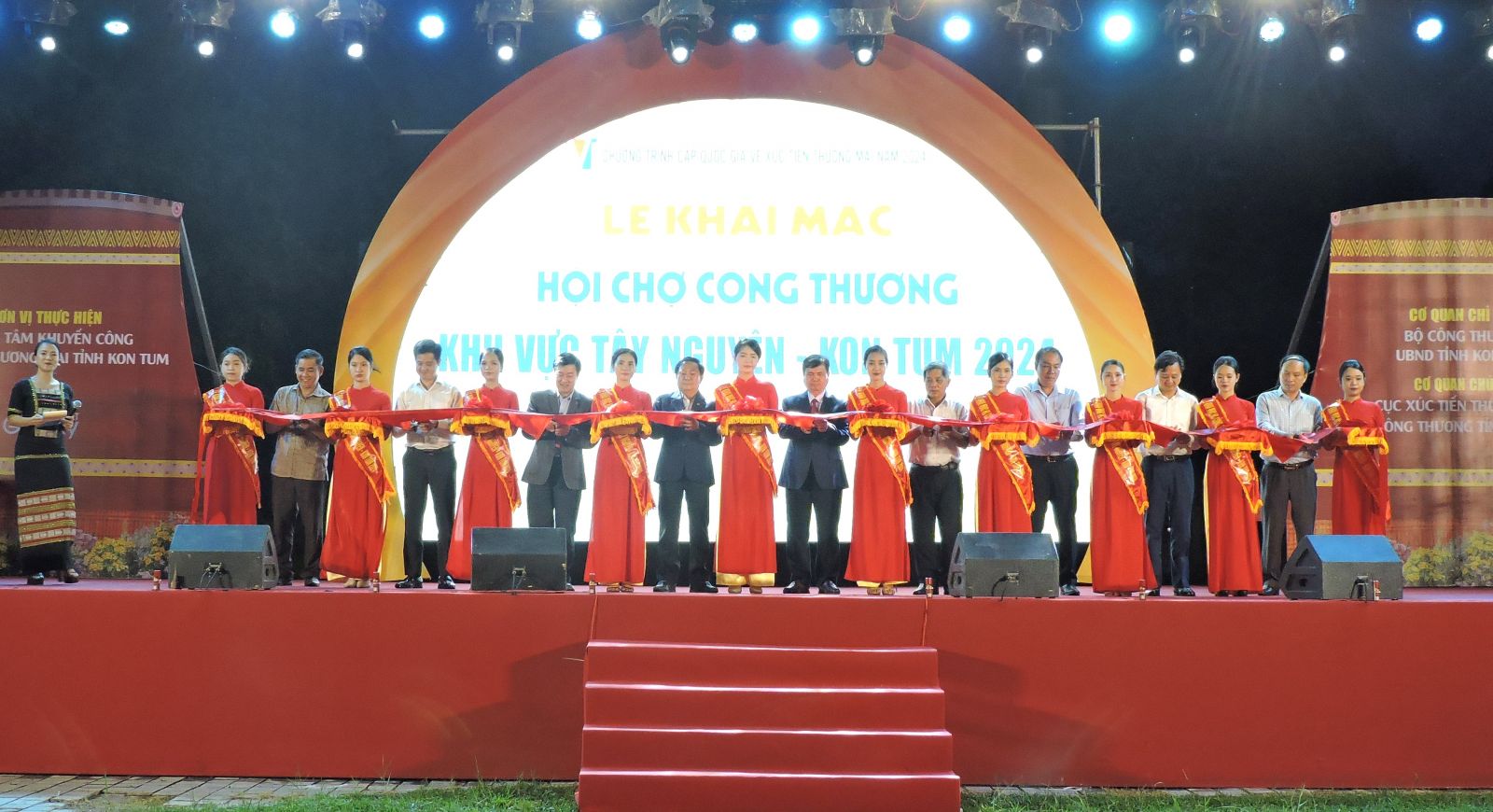 Đại biểu cắt băng khai mạc Hội chợ (Ảnh: Báo Kon Tum)