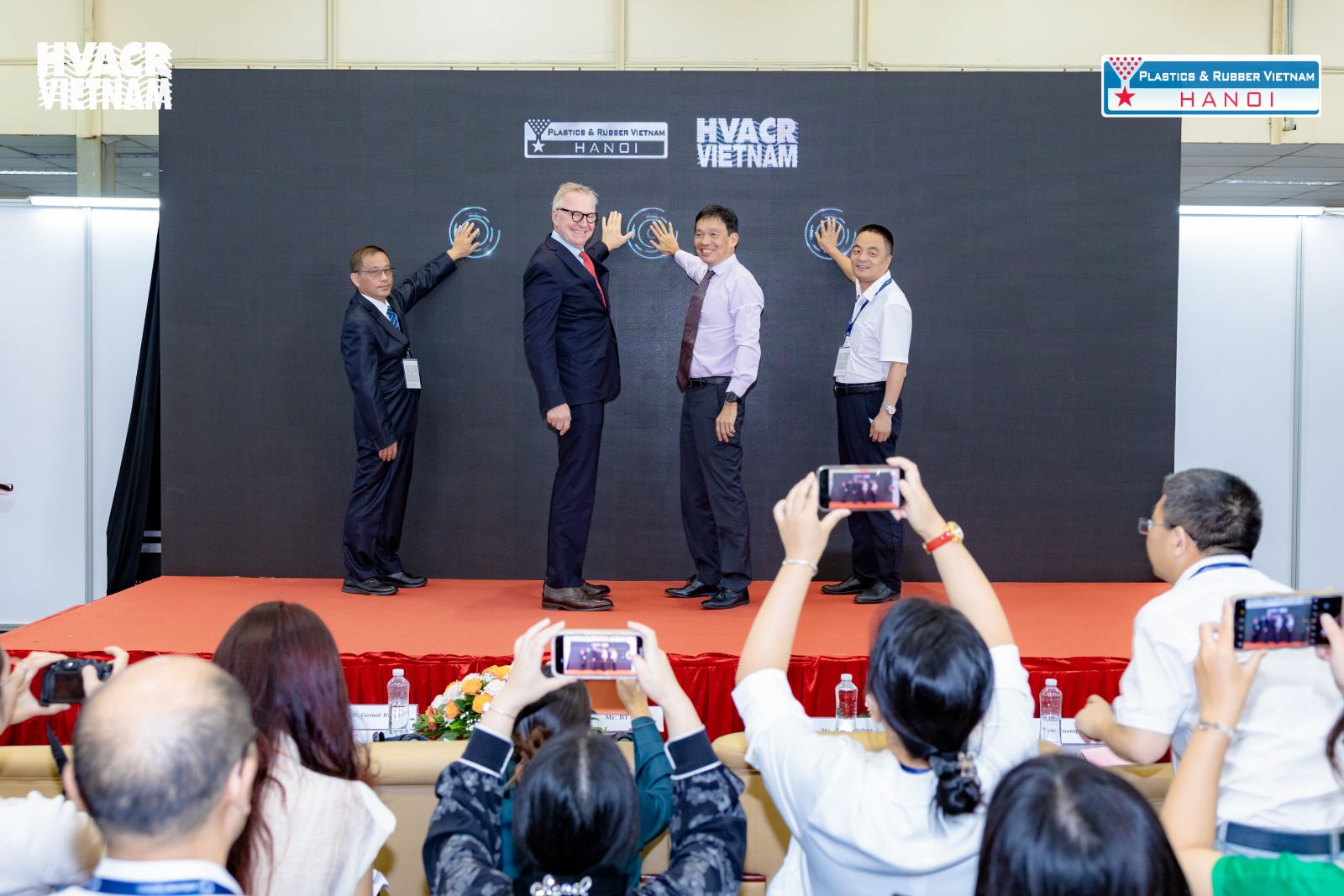 Các đại biểu ấn nút khai mạc Triển lãm quốc tế lần thứ 15 về Công nghệ HVAC, Hệ thống làm lạnh & Tòa nhà thông minh tại Việt Nam (HVACR Vietnam 2023)