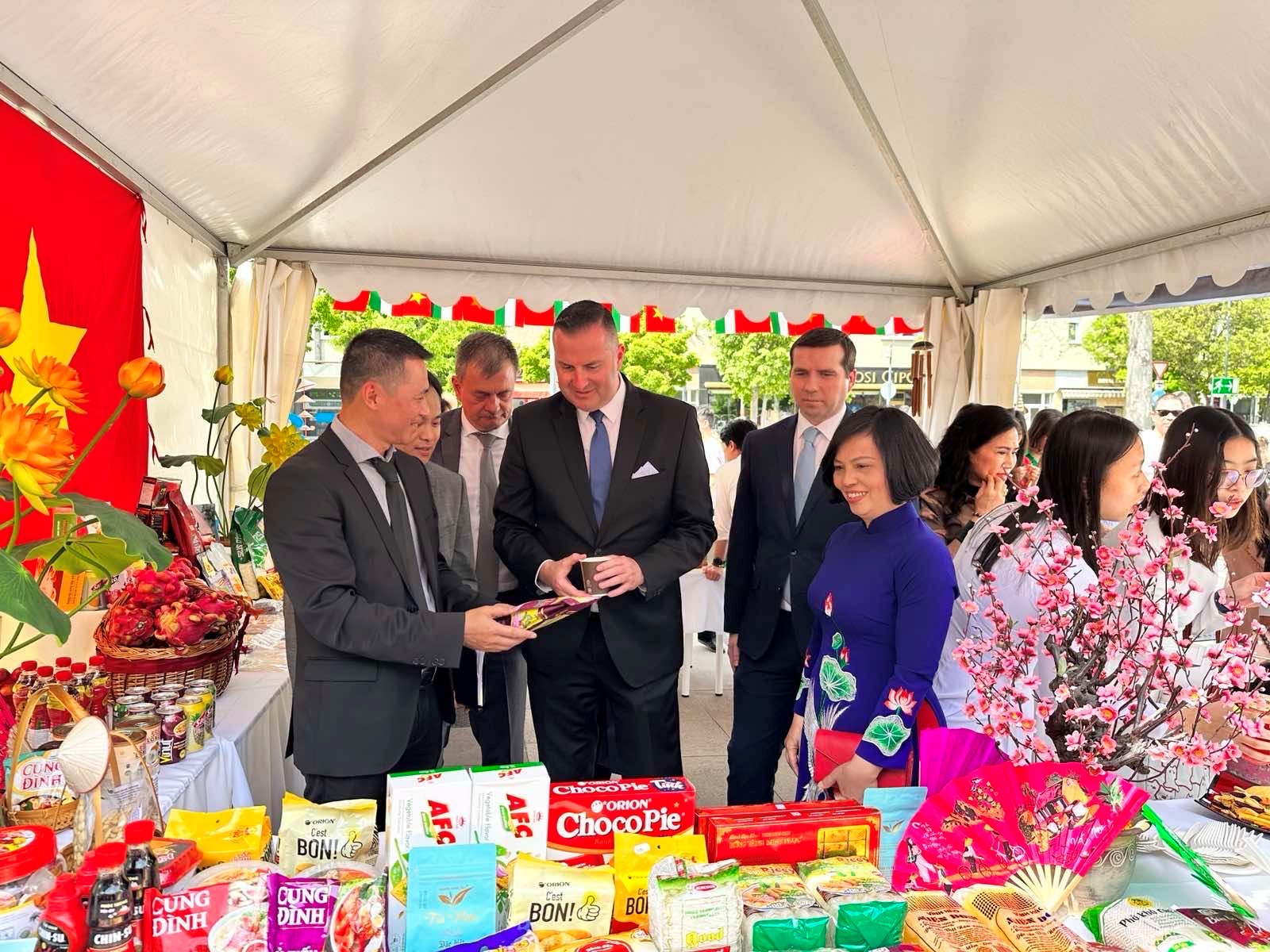 Trong khuôn khổ hoạt động của Ngày hội Văn hoá Việt Nam 2023 diễn ra tại thành phố Zalaegerszeg - Hungary, Thương vụ Việt Nam tại Hungary đã tổ chức gian hàng nhằm quảng bá giới thiệu các mặt hàng nông sản thế mạnh xuất khẩu của Việt Nam.