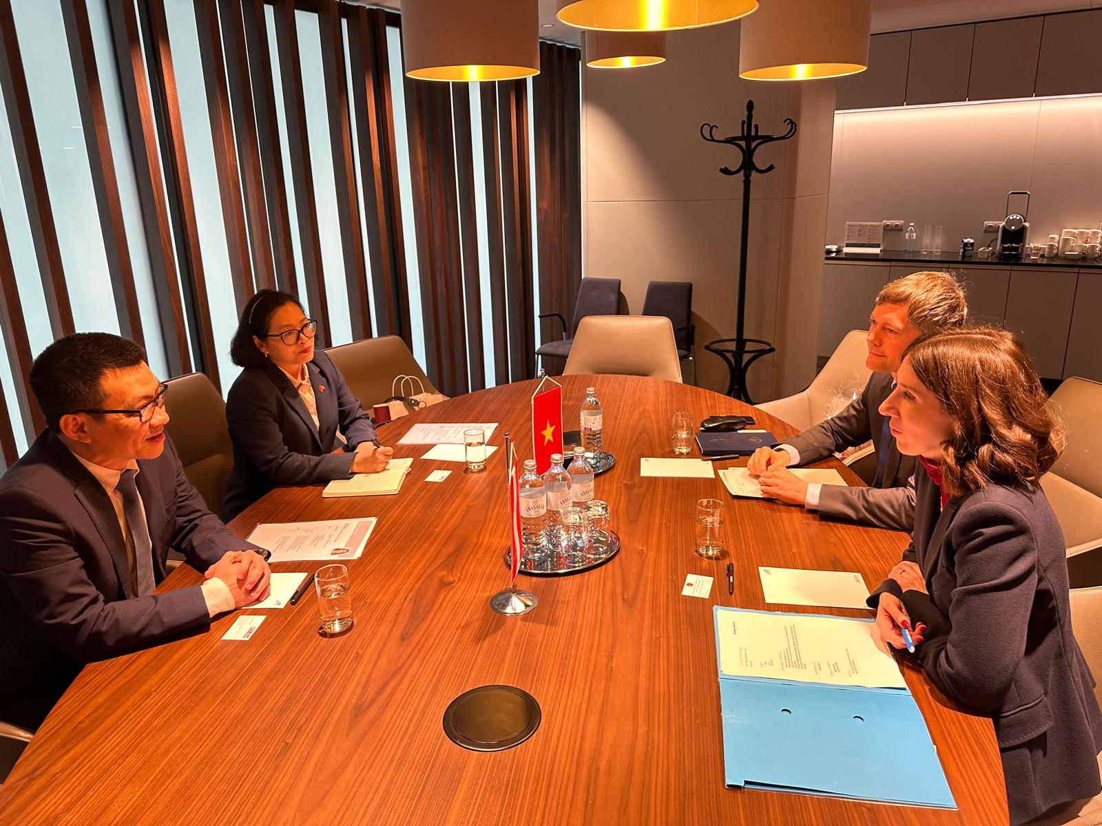 Ngày 30 tháng 01 năm 2025, Đại sứ Vũ Lê Thái Hoàng đã gặp, trao đổi thúc đẩy hợp tác Trang Chủ Game 33win com Mới Nhất, đầu tư Việt - Áo với bà Amelie Gross, Phó Chủ tịch Phòng Kinh tế liên bang Áo (WKÖ), và ông Stefan Stantejsky, Vụ trưởng Vụ Châu Á và Châu Đại dương. Cùng dự có Trưởng Thương vụ Việt Nam tại Áo.