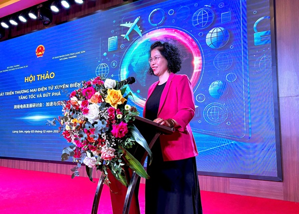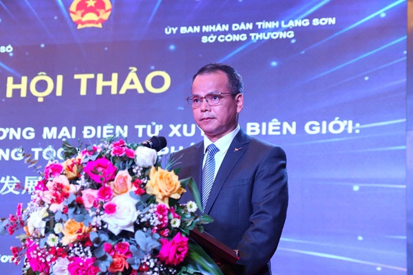 Ông Lý Kiến Lương, đại diện Sở Thương mại Khu tự trị dân tộc Choang Quảng Tây, Trung Quốc trình bày nội dung Trang Chủ Game 33win com Mới Nhất điện tử xuyên biên giới tại Hội thảo