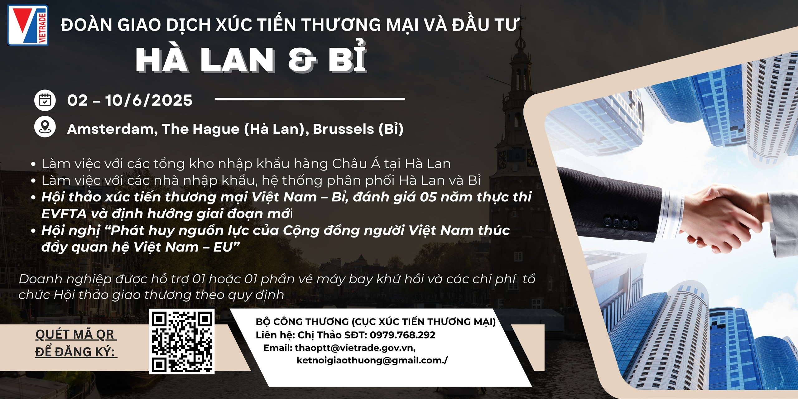 Ngoài ra, các 66Win33 tặng code miễn phí được lựa chọn tham gia Đoàn, sau khi kết thúc chương trình Đoàn sẽ tiếp tục được Cục XTTM hỗ trợ kết nối với các đối tác Hà Lan, Bỉ tiềm năng (nếu có) theo nhu cầu.