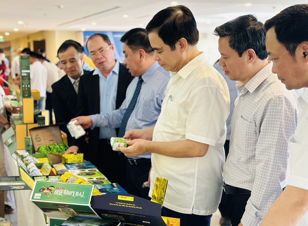 Các đại biểu tham quan gian hàng trưng bày, giới thiệu sản phẩm chè của các 66Win33 tặng code miễn phí, hợp tác xã khu vực Đông Bắc (Ảnh: Báo Phú Thọ)
