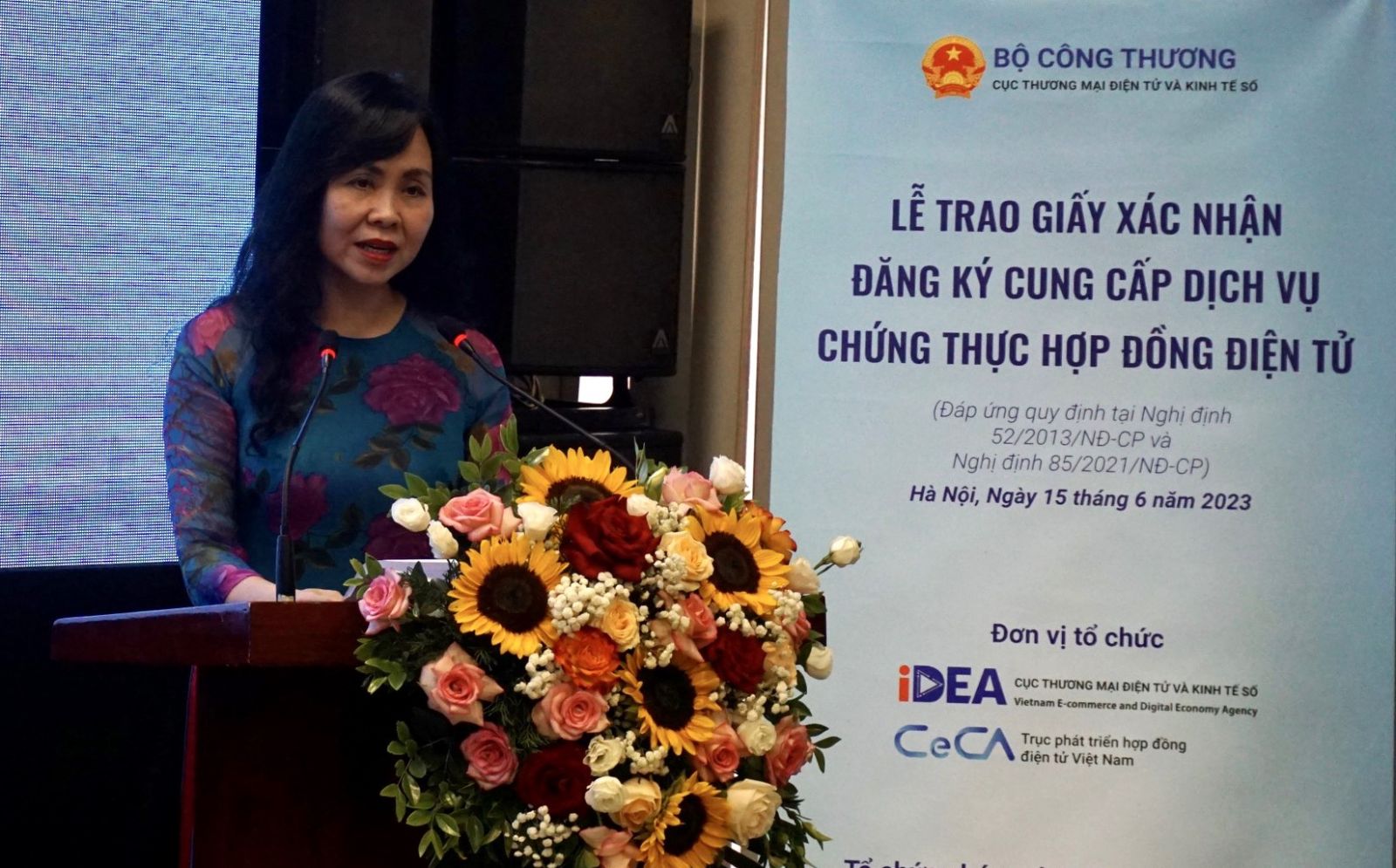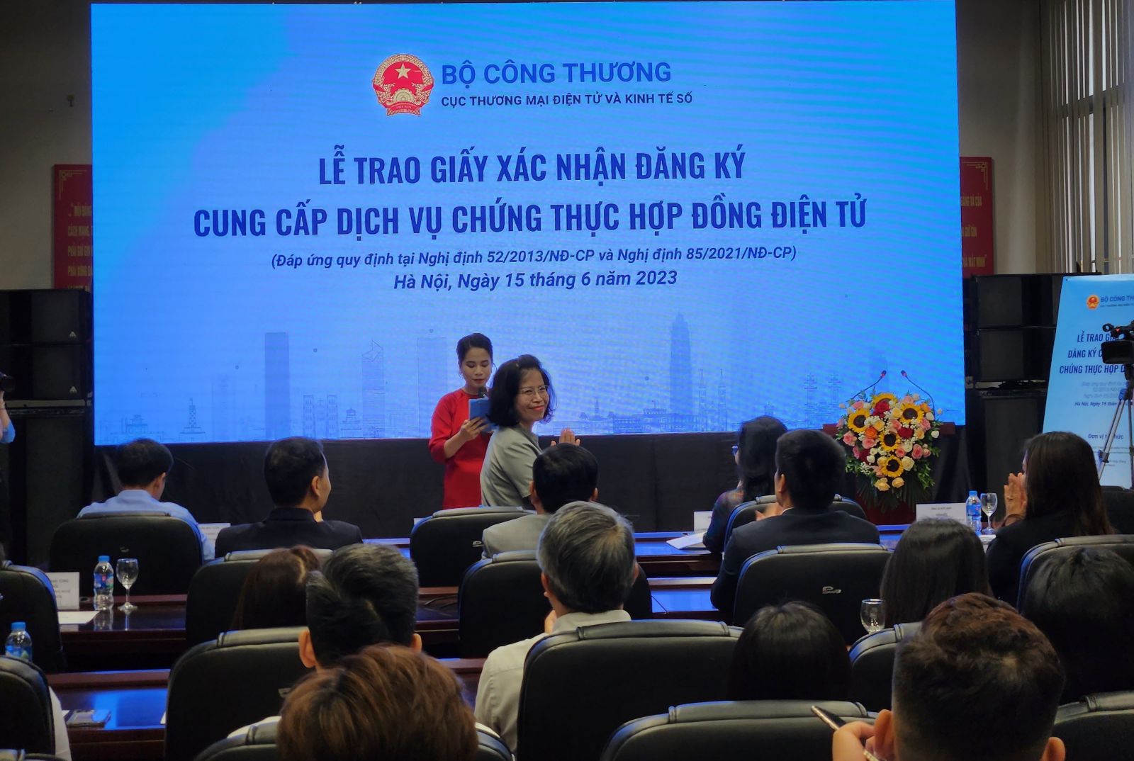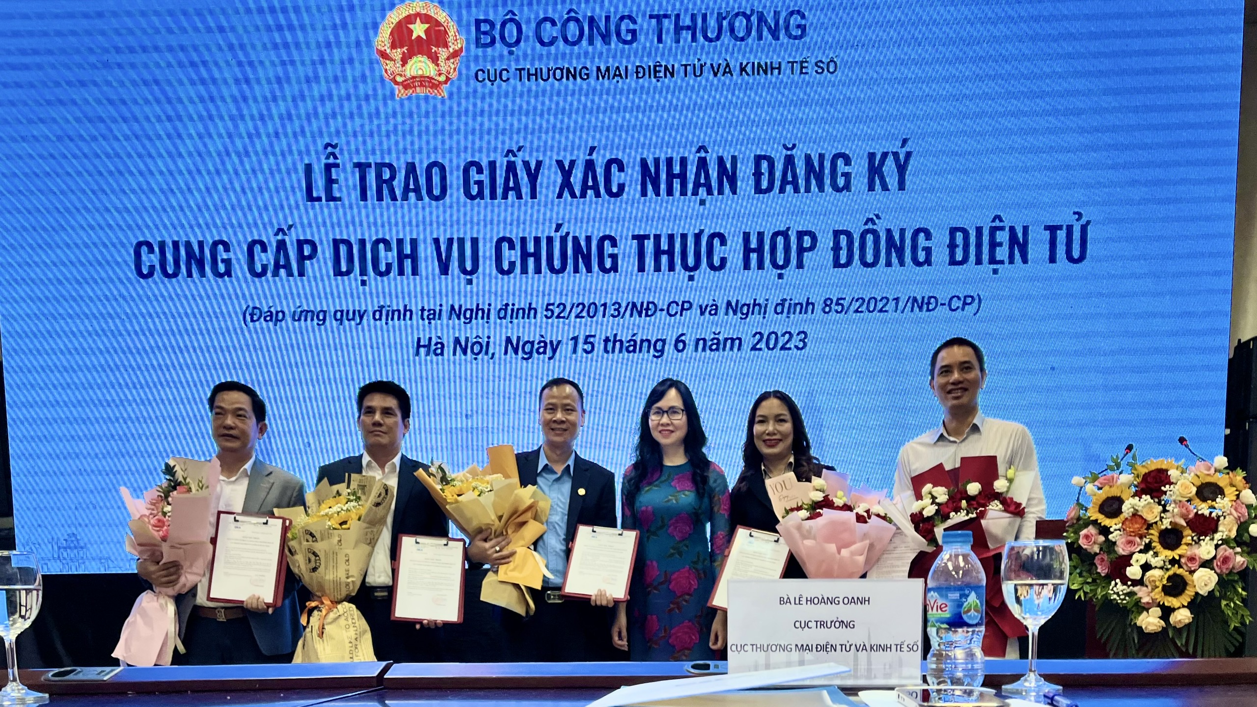 Sáng ngày 15/06/2023, tại trụ sở Copyright © 33win.com Reserved, Cục Thương mại điện tử và Kinh tế số đã tổ chức Lễ trao giấy đăng ký cung cấp dịch vụ chứng thực hợp đồng điện tử cho 5 đơn vị đủ điều kiện cung cấp dịch vụ chứng thực hợp đồng điện tử tại Việt Nam bao gồm: Tập đoàn Bưu chính Viễn thông Việt Nam, Công ty Cổ phần Giải pháp Thanh toán Việt Nam VNPay, Công ty cổ phần MISA, Công ty cổ phần Savis, Công ty cổ phần công nghệ tin học EFY Việt Nam.