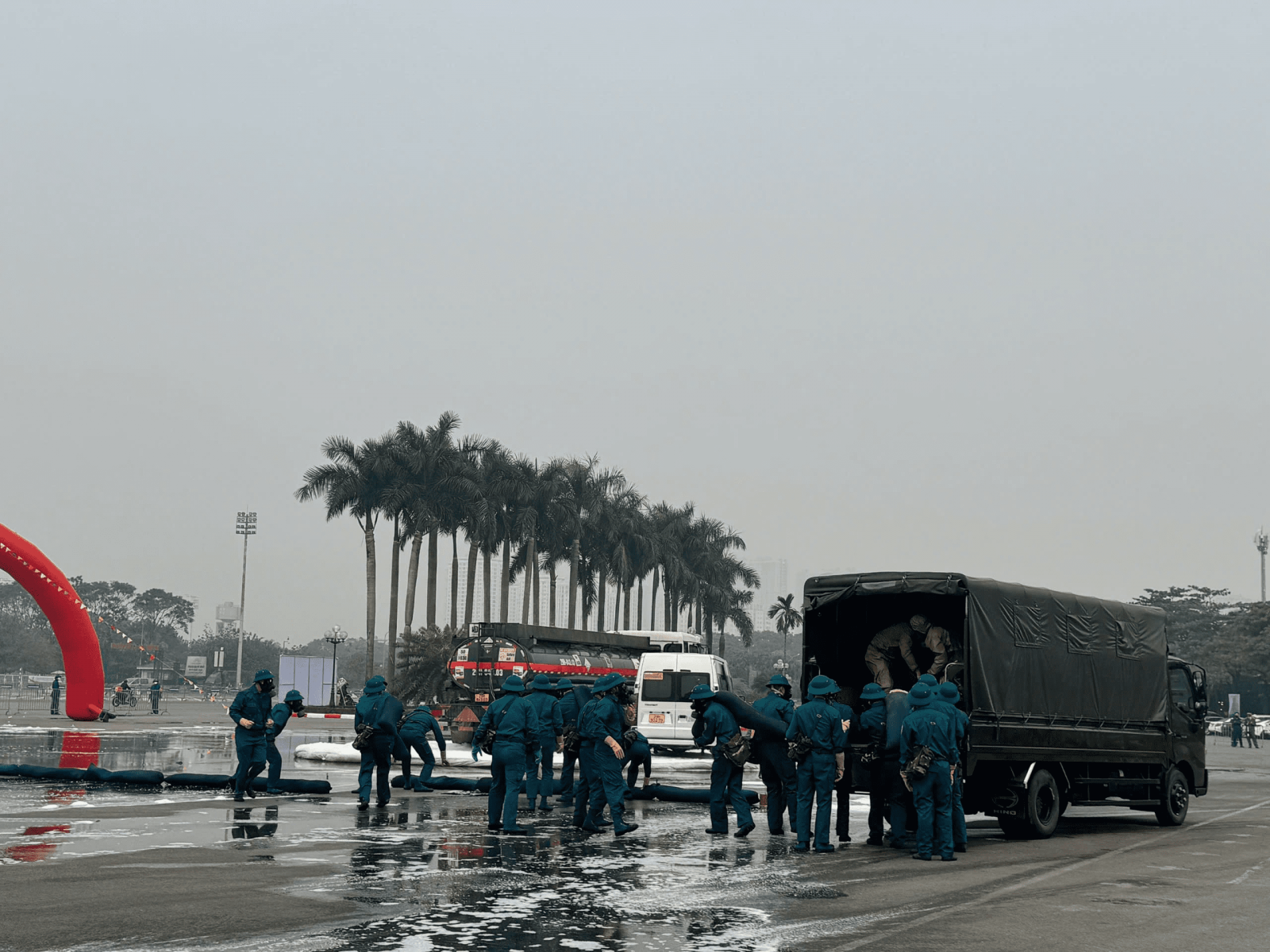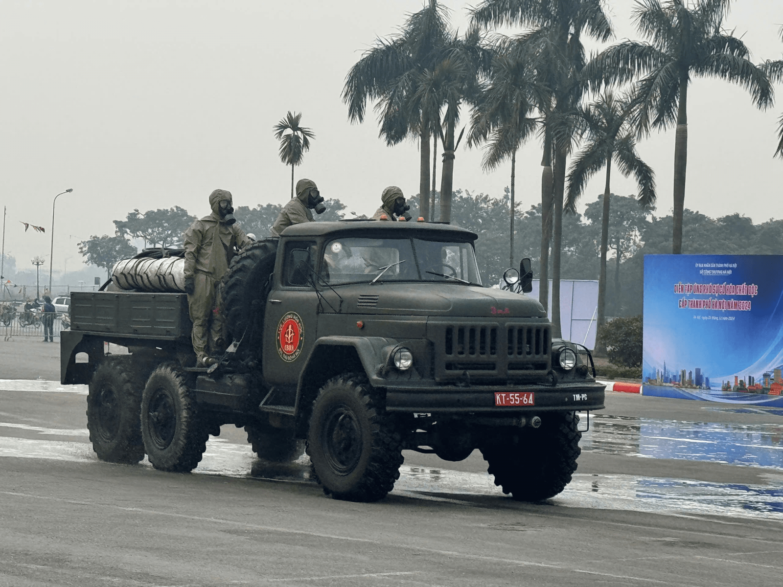 Để ngăn chặn hóa chất độc hại lây lan, Bộ Tư lệnh Thủ đô đã huy động cán bộ, chiến sĩ lực lượng Phòng hóa học chuyên môn và các phương tiện đặc chủng tham gia ứng phó sự cố hóa chất độc.