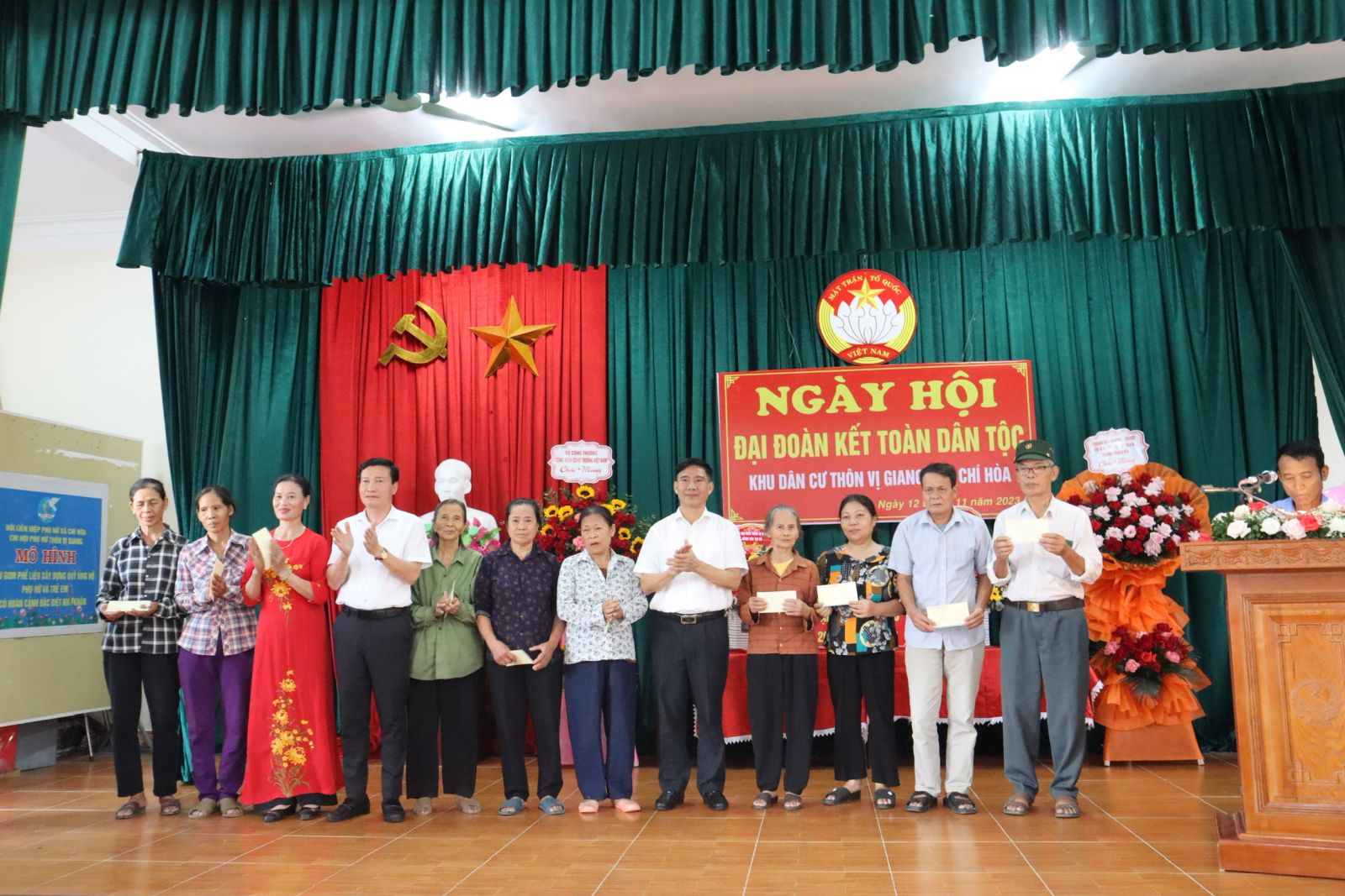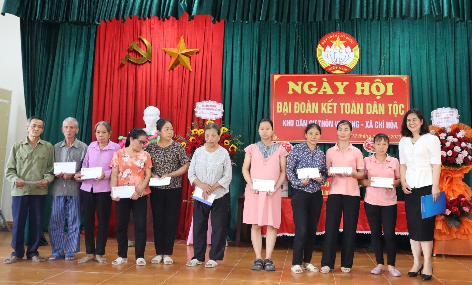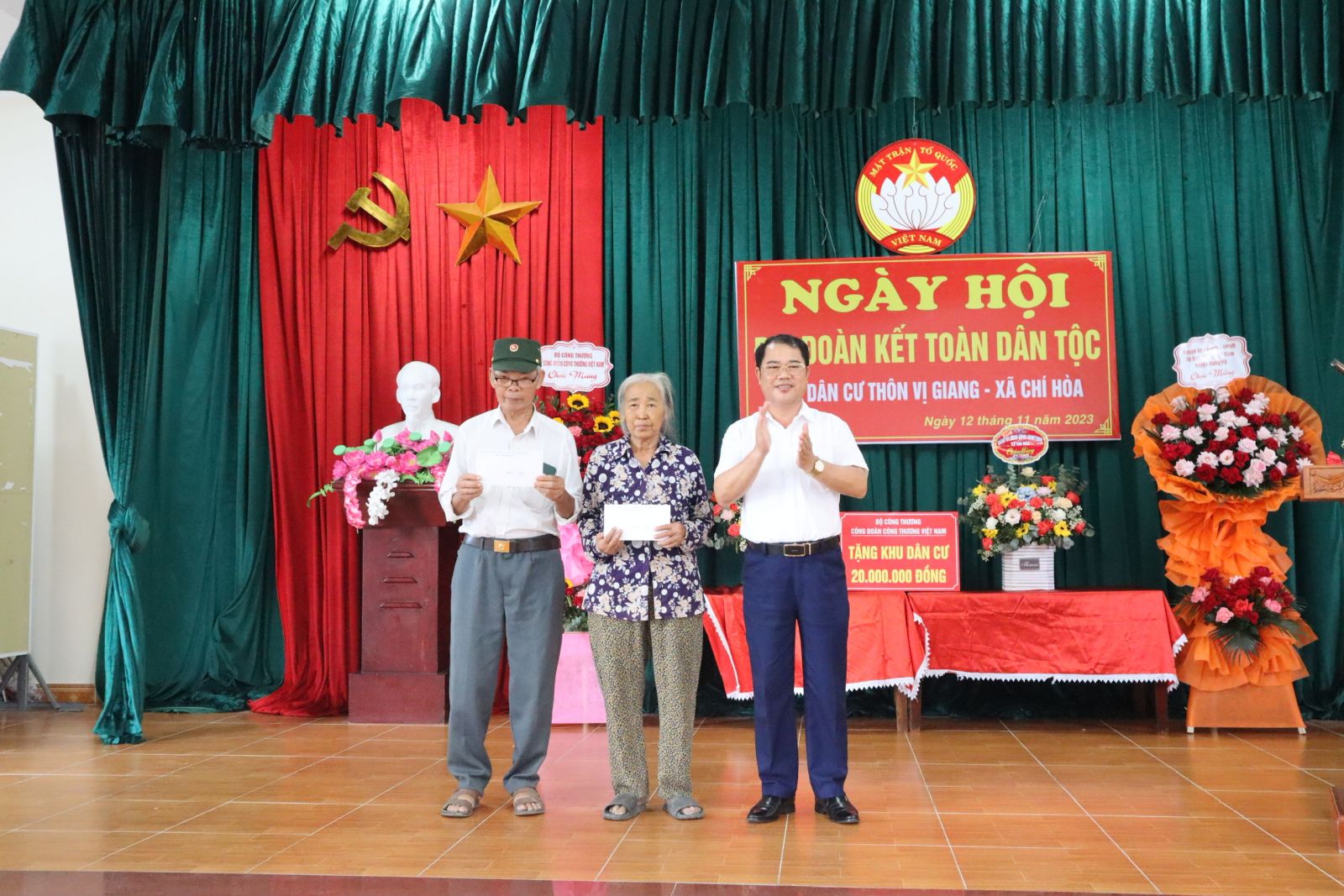 Tại ngày Hội đại đoàn kết dân tộc, đại diện Bộ Công thương; Lãnh đạo Huyện ủy- HĐND - UBND - Ủy ban MTTQ Việt Nam huyện đã tặng hoa chúc mừng thôn Vị Giang, tặng quà các gia đình chính sách, các hộ gia đình có hoàn cảnh đặc biệt khó khăn; Đảng ủy - HĐND - UBND xã Chí Hoà khen thưởng các gia đình văn hoá tiêu biểu năm 2023...