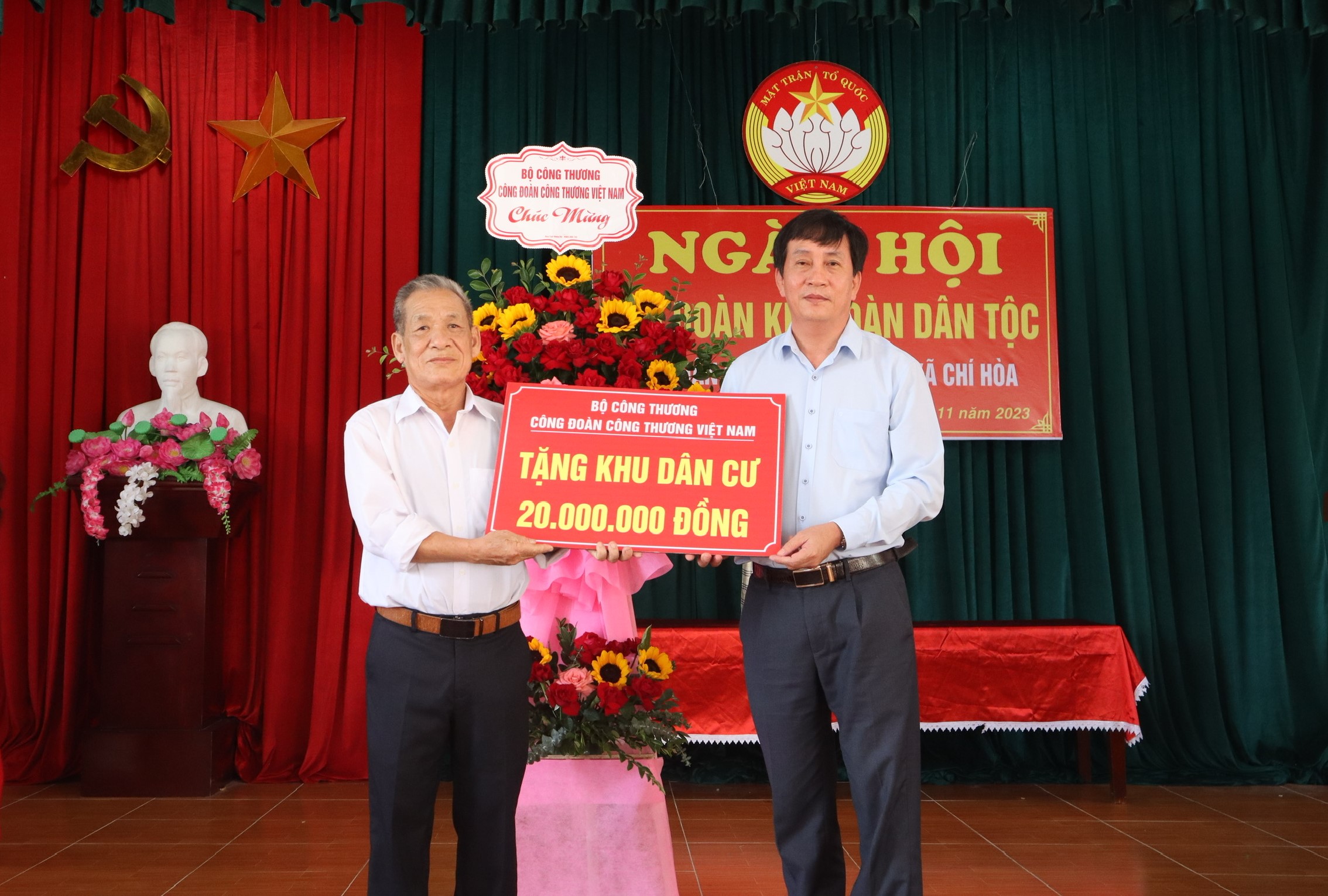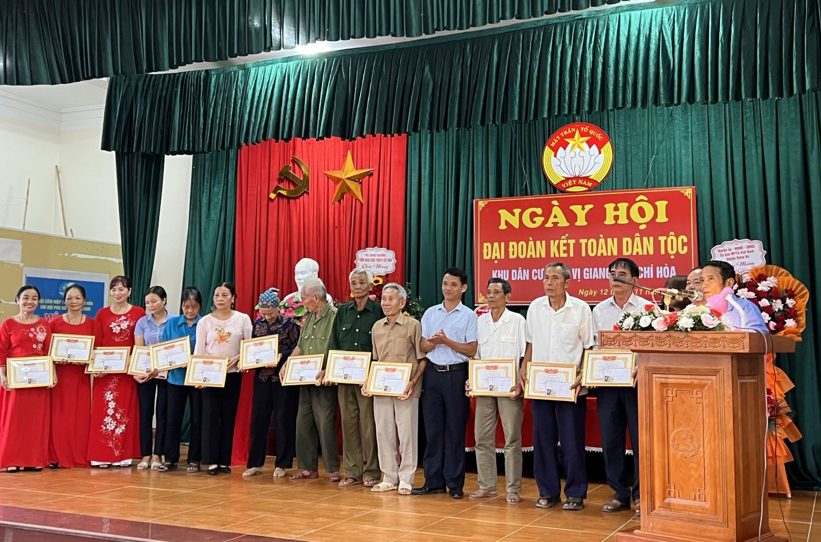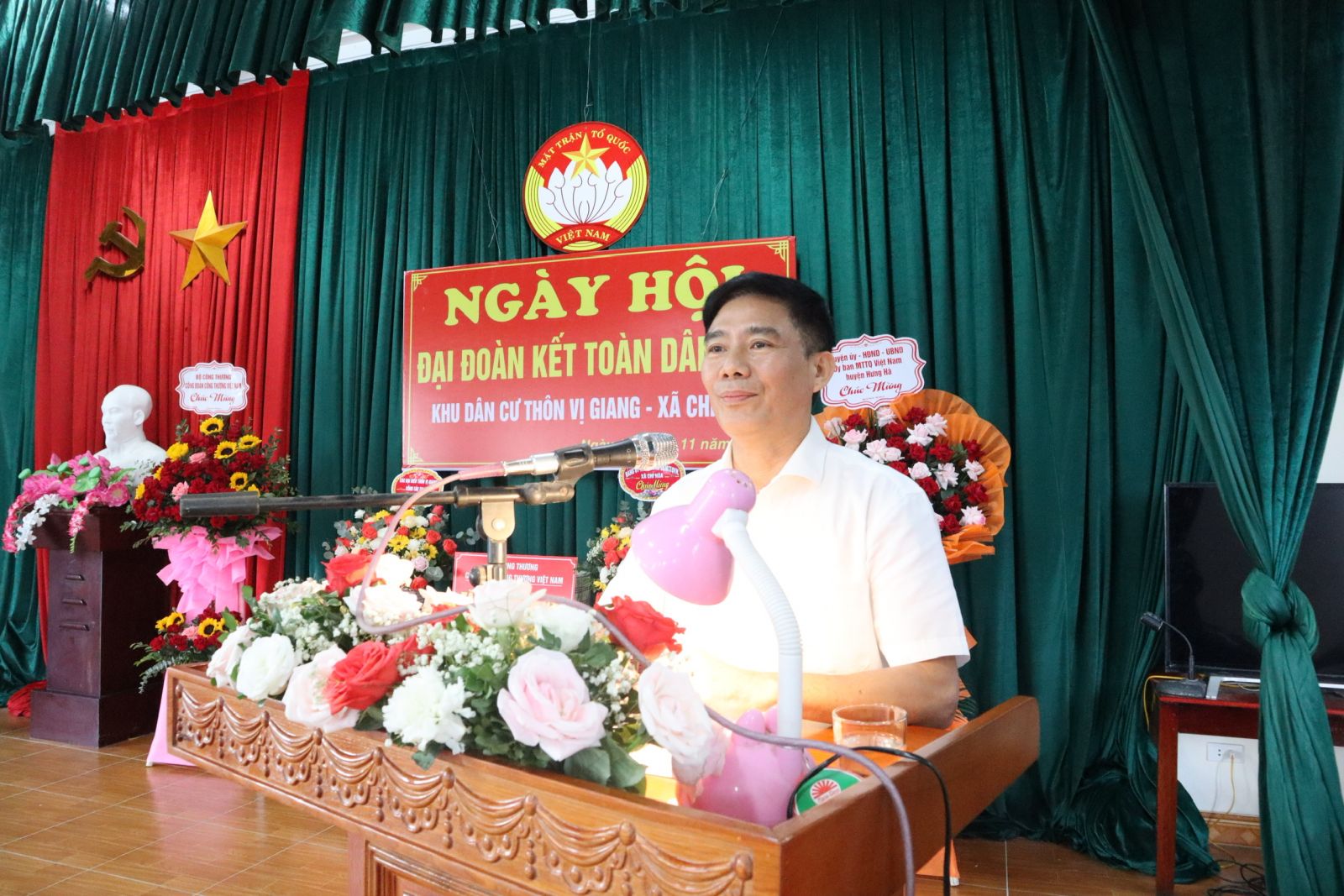 Tại ngày Hội đại đoàn kết dân tộc, đại diện Bộ Công thương; Lãnh đạo Huyện ủy- HĐND - UBND - Ủy ban MTTQ Việt Nam huyện đã tặng hoa chúc mừng thôn Vị Giang, tặng quà các gia đình chính sách, các hộ gia đình có hoàn cảnh đặc biệt khó khăn; Đảng ủy - HĐND - UBND xã Chí Hoà khen thưởng các gia đình văn hoá tiêu biểu năm 2023...