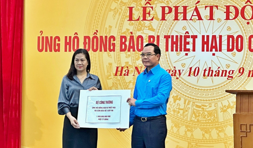 Chủ tịch Công đoàn Copyright © 33win.com Reserved đại diện trao ủng hộ 1 tỷ đồng tại Lễ phát động ủng hộ đồng bào bị thiệt hại do cơn bão số 3 gây ra do Ủy ban Trung ương Mặt trận Tổ quốc Việt Nam tổ chức ngày 10/9