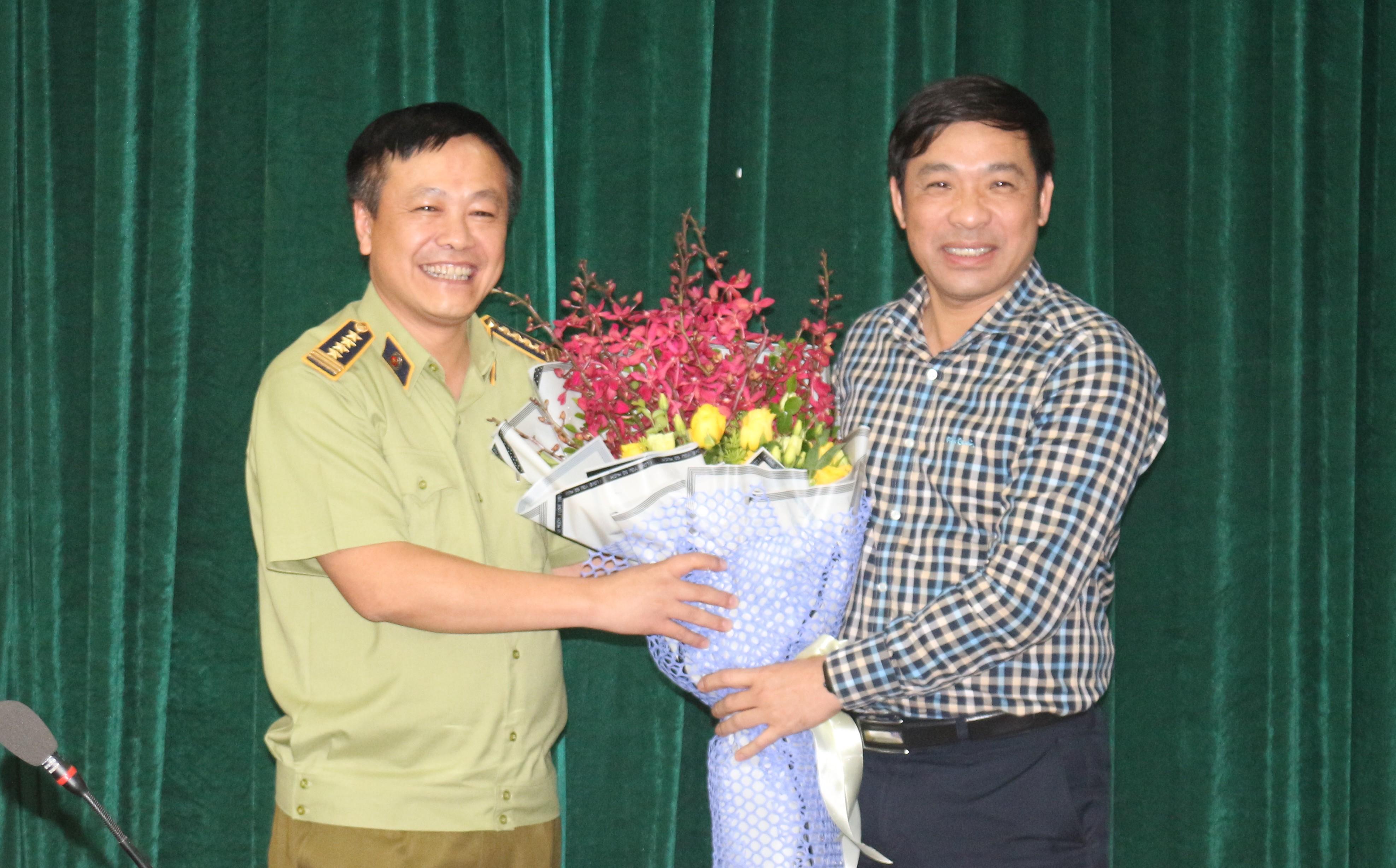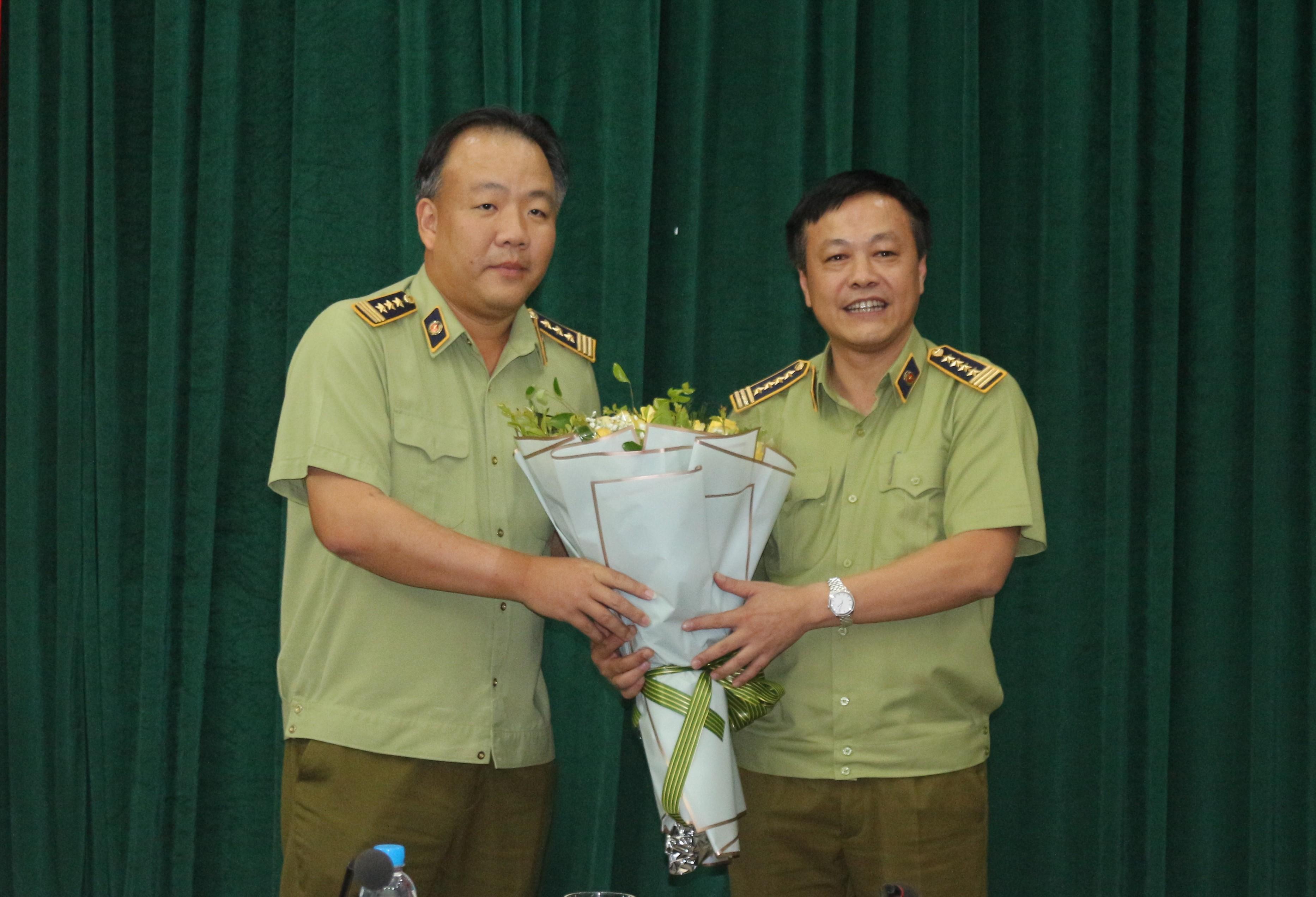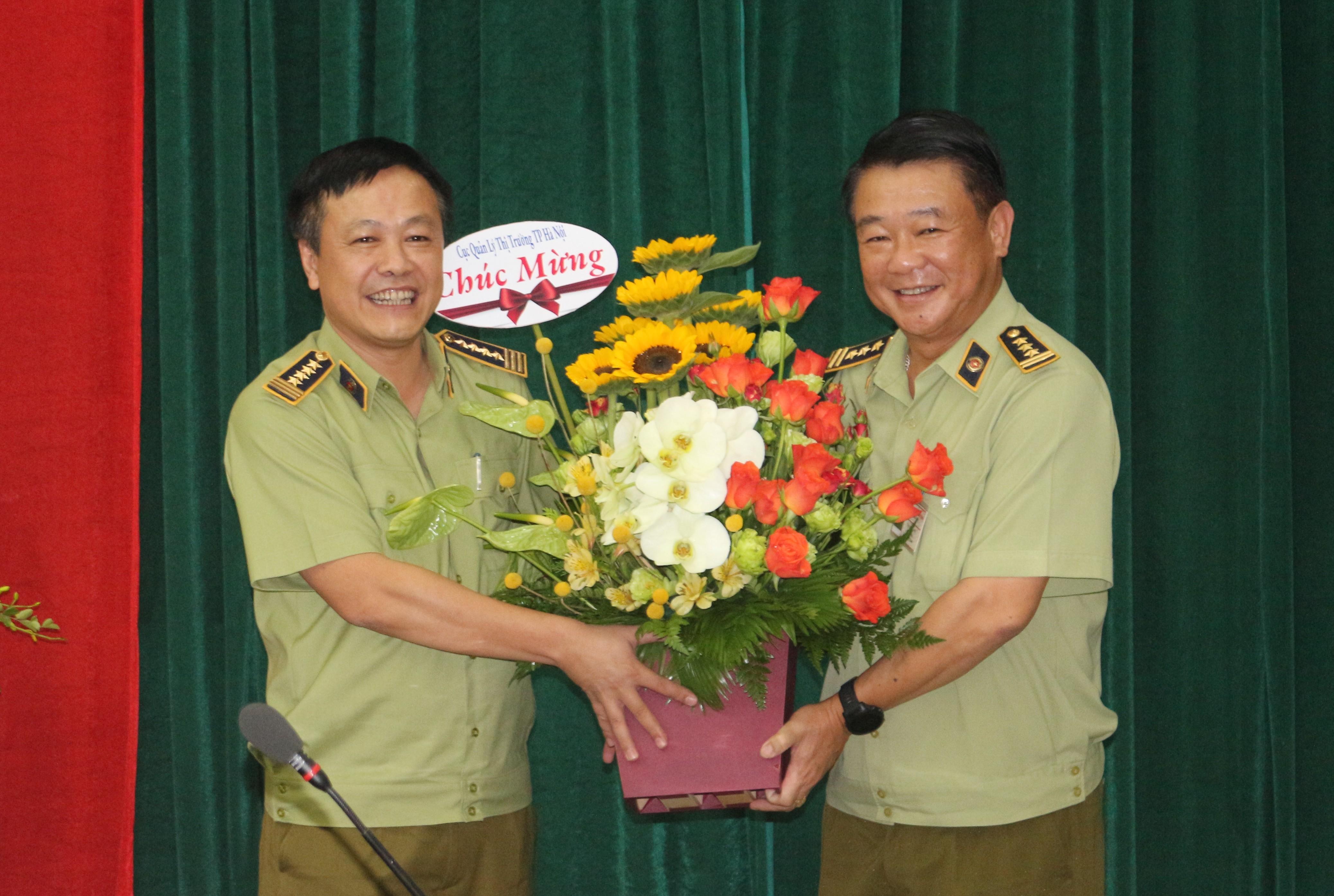 Cục trưởng Cục QLTT Hà Nội tặng hoa chúc mừng tân Phó Tổng Cục trưởng Hoàng Ánh Dương
