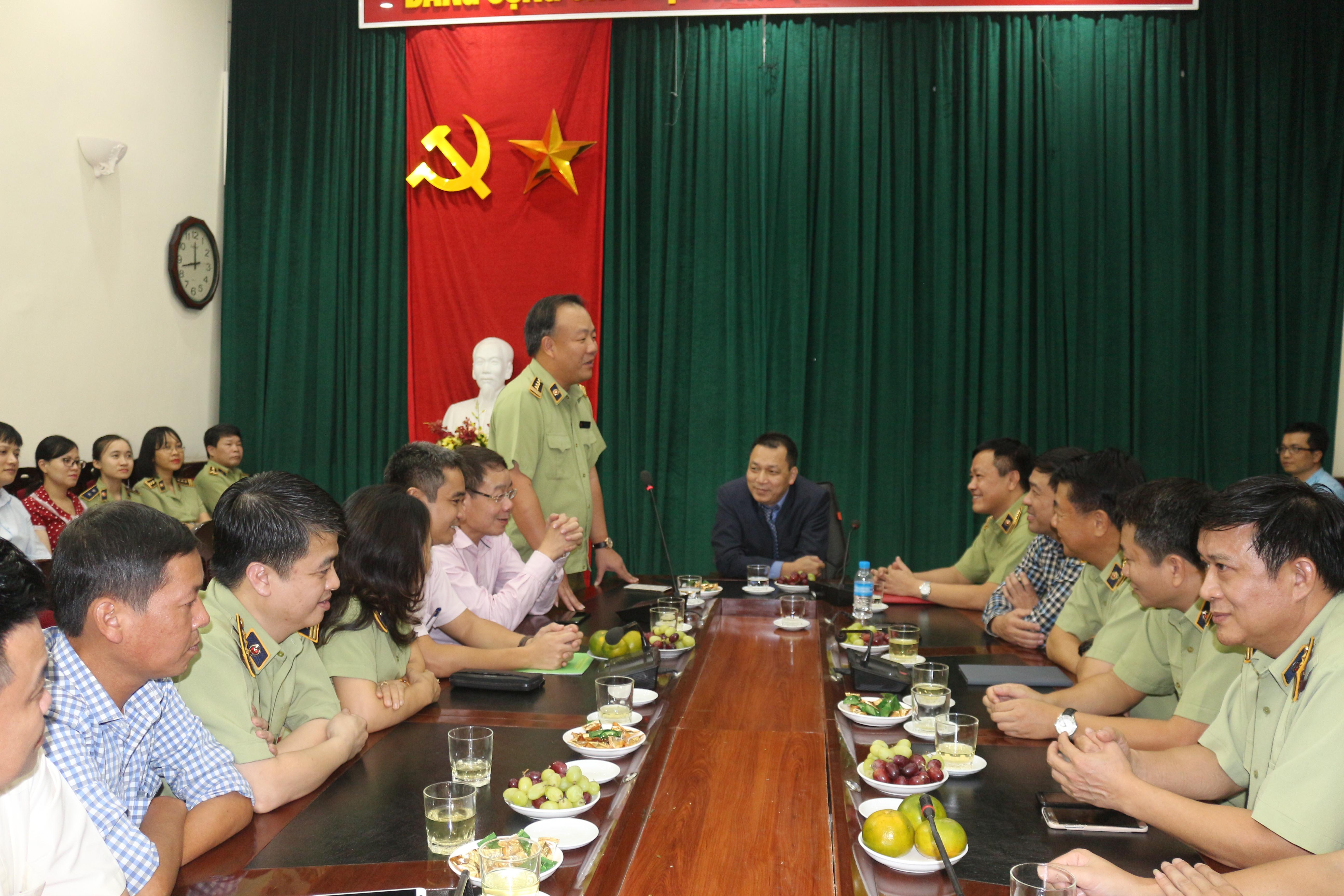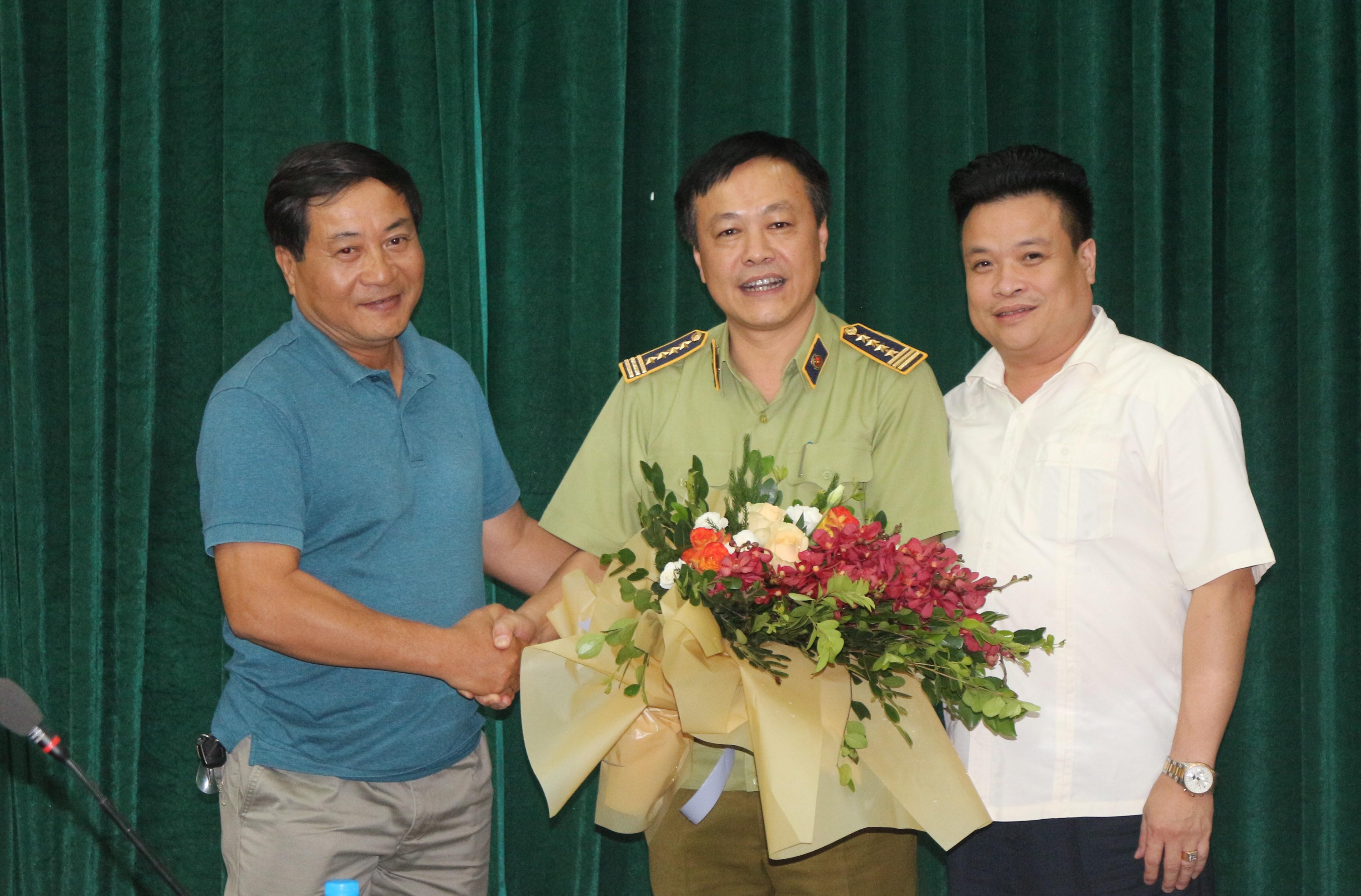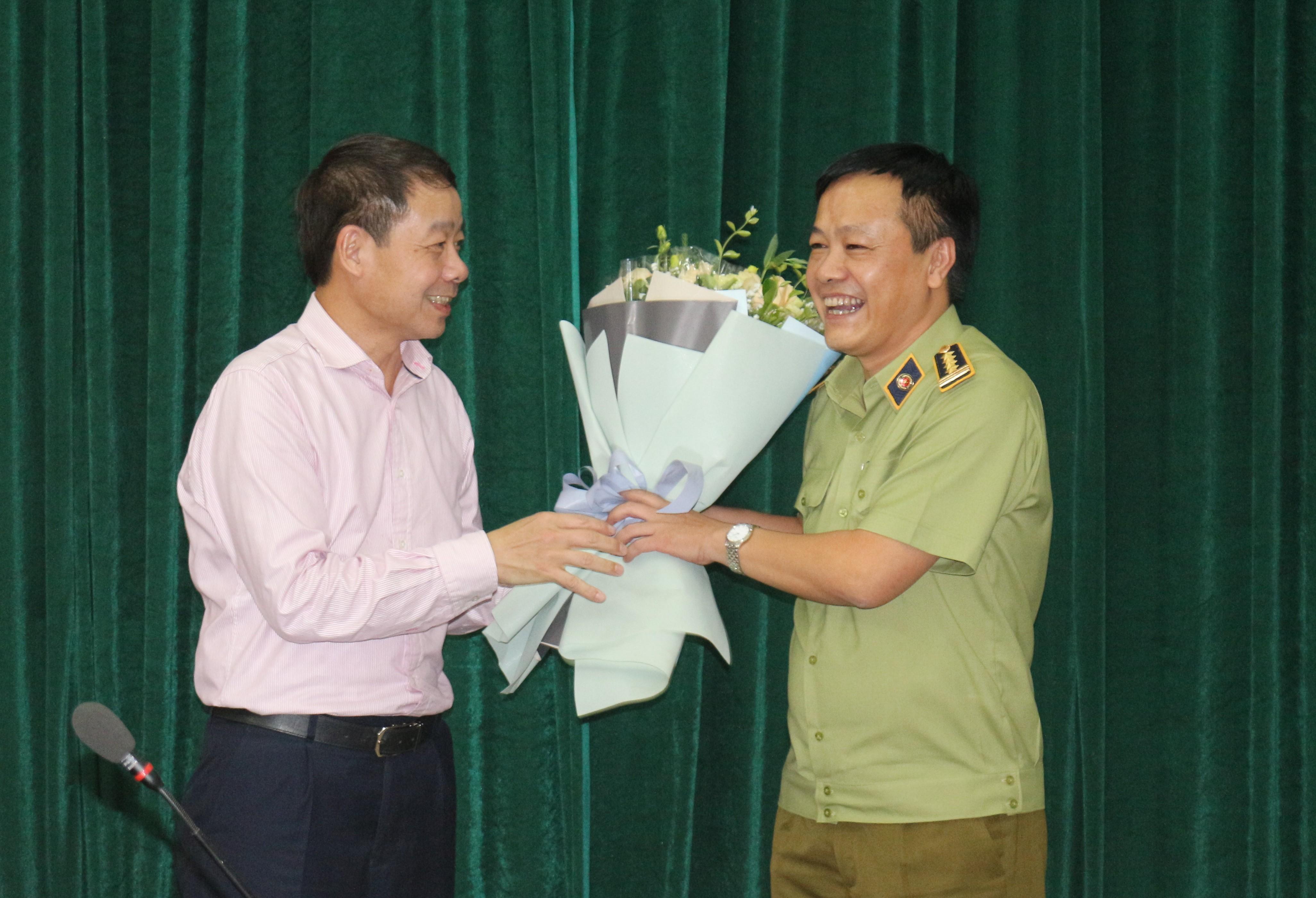 Cục trưởng Cục QLTT Hà Nội tặng hoa chúc mừng tân Phó Tổng Cục trưởng Hoàng Ánh Dương