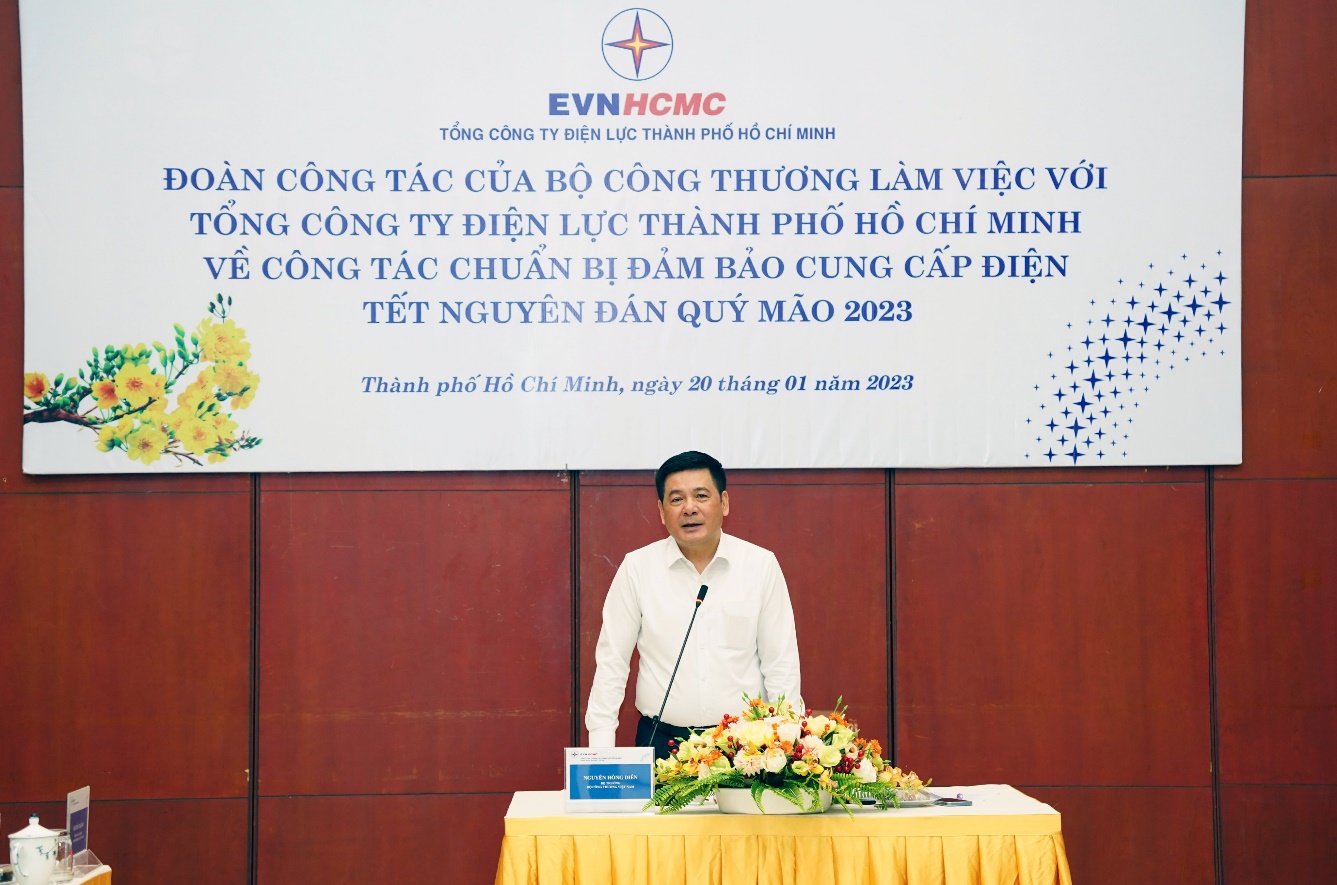 Phát biểu tại buổi làm việc, Thứ trưởng Đặng Hoàng An chia vui với EVNHCMC về kết quả hoạt động tích cực đã đạt được của EVNHCMC về mọi mặt từ tăng trưởng điện thương phẩm, giảm tổn thất điện năng, độ tin cậy cấp điện, ứng dụng khoa học công nghệ…, góp phần đảm bảo cung ứng điện cho địa phương.