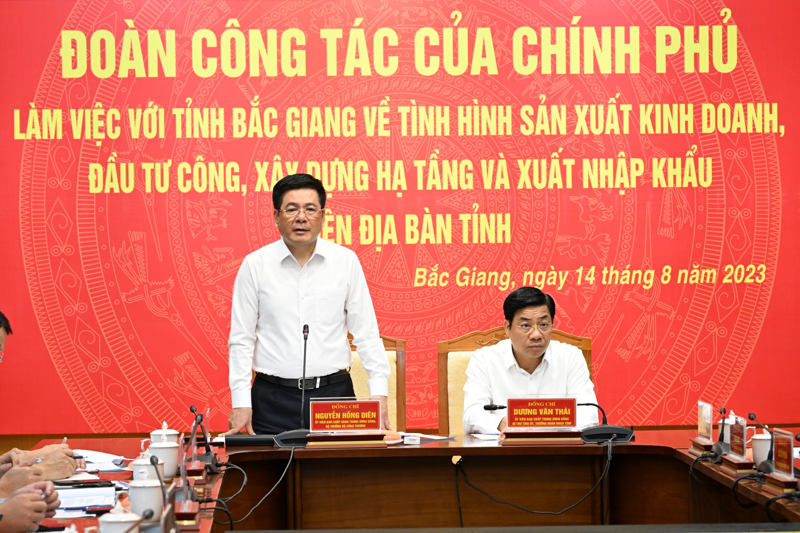 Về phía tỉnh Bắc Giang có đồng chí Dương Văn Thái - Ủy viên Trung ương Đảng, Bí thư Tỉnh ủy, Trưởng Đoàn ĐBQH tỉnh Bắc Giang; đồng chí Lê Ánh Dương - Phó Bí thư Tỉnh ủy, Chủ tịch UBND tỉnh; các đồng chí Phó Chủ tịch UBND tỉnh; lãnh đạo Văn phỏng Tỉnh ủy, Văn phòng UBND tỉnh và các sở, ban, ngành trên địa bàn tỉnh.