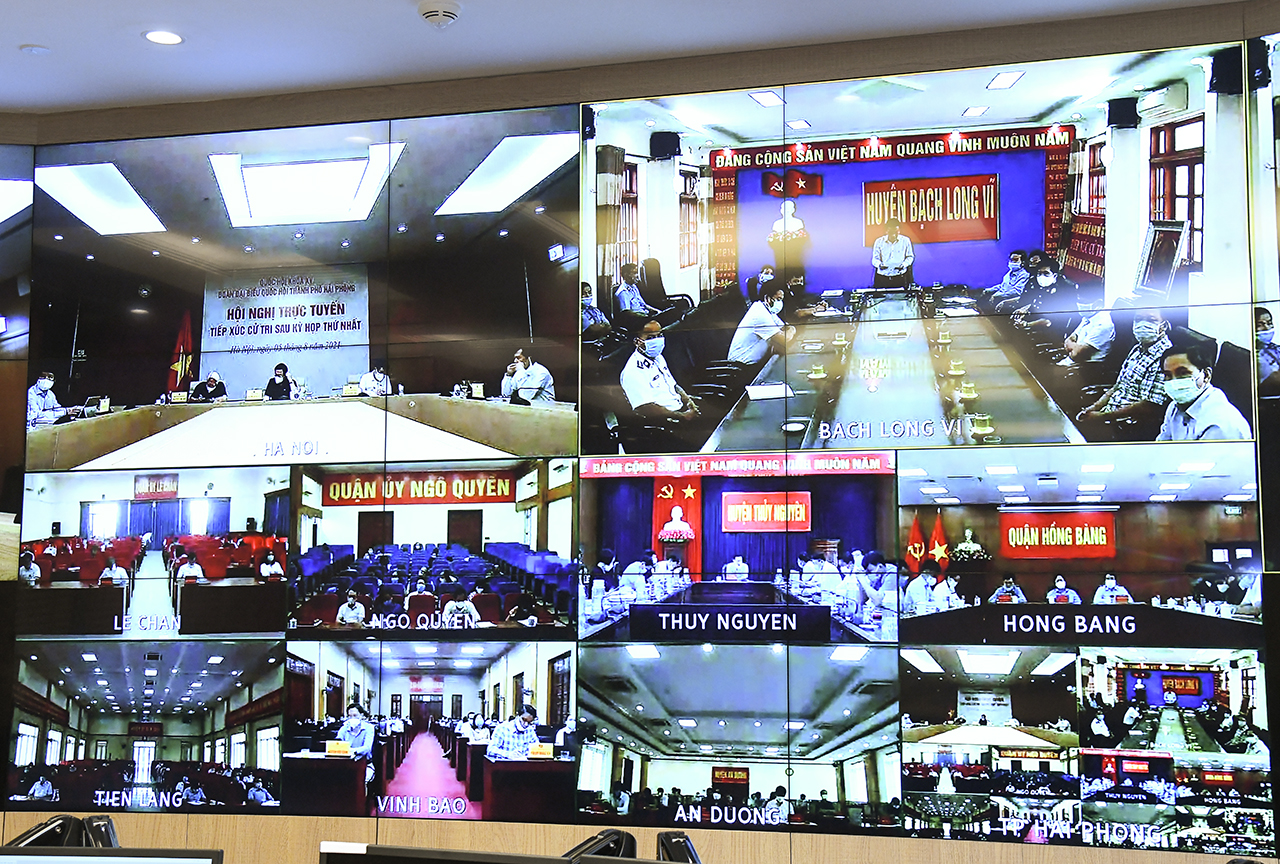 Từ điểm cầu của Đoàn đại biểu Quốc hội Hải Phòng có sự tham gia của Bí thư Thành ủy Hải Phòng, Trưởng đoàn Quốc hội Tp.Hải Phòng Trần Lưu Quang; Phó Bí thư Thường trực Thành ủy Hải Phòng Đỗ Mạnh Hiến; Phó trưởng Đoàn đại biểu Quốc hội, Giám đốc Sở Tư pháp thành phố Lã Thanh Tân; Phó Tư lệnh kiêm Tham mưu trưởng Bộ Tư lệnh Quân khu 3 Thiếu tướng Nguyễn Đức Dũng; Giám đốc Công an thành phố Thiếu tướng Vũ Thanh Chương; Chỉ huy trưởng Bộ Chỉ huy quân sự thành phố Đại tá Nguyễn Minh Quang; Chủ tịch Liên đoàn Lao động thành phố Tống Văn Băng.