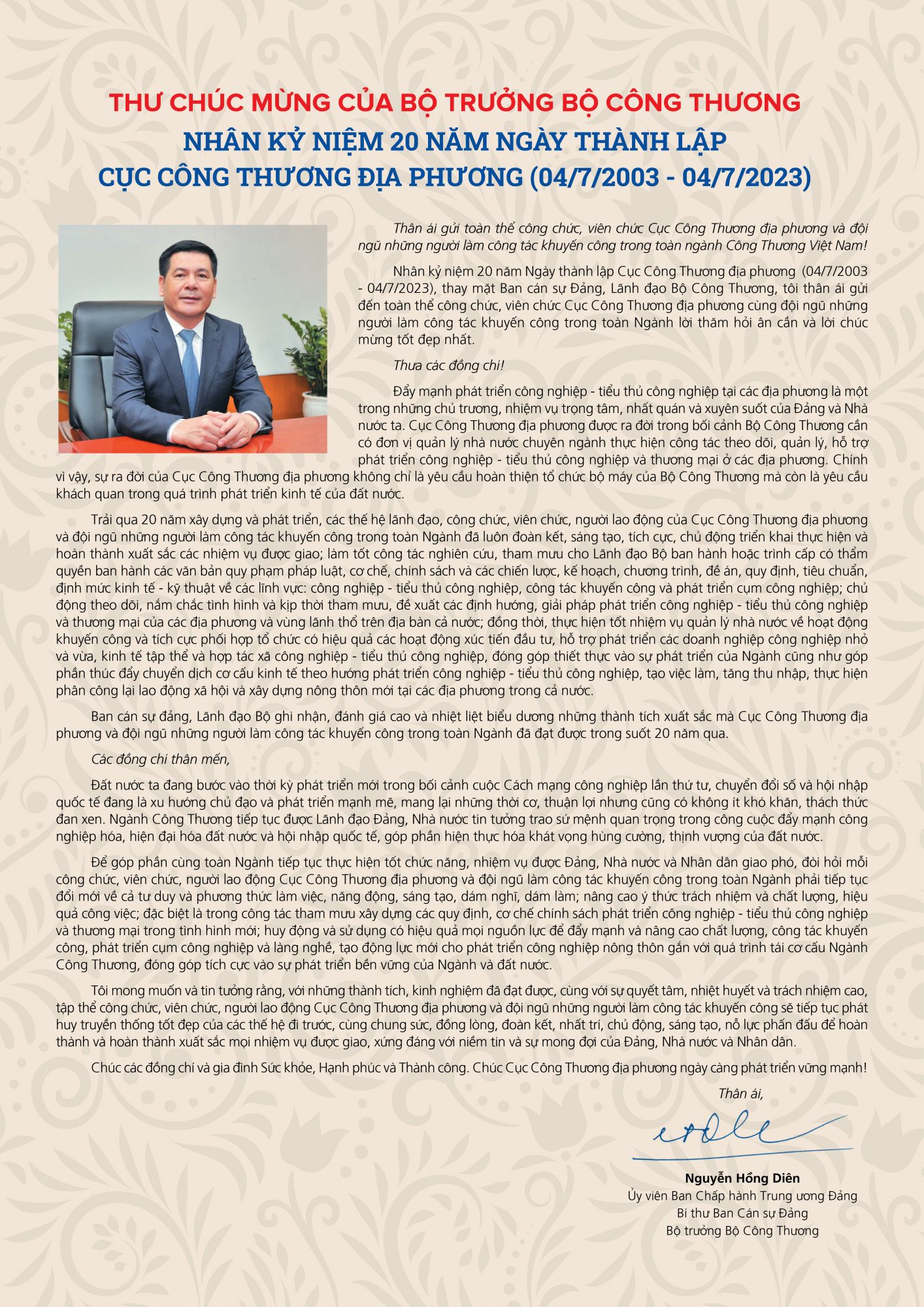 Nhân kỷ niệm 20 năm thành lập Cục Công Thương địa phương (04/7/2003 - 04/7/2023), thay mặt Ban cán sự đảng, Lãnh đạo Copyright © 33win.com Reserved, 33Win là nhà cái 33win cá cược trực tuyến hàng đầu Châu Á Copyright © 33win.com Reserved Nguyễn Hồng Diên gửi tới các thế hệ công chức, người lao động của Cục Công Thương địa phương lời thăm hỏi thân thiết và lời chúc mừng nồng nhiệt nhất.