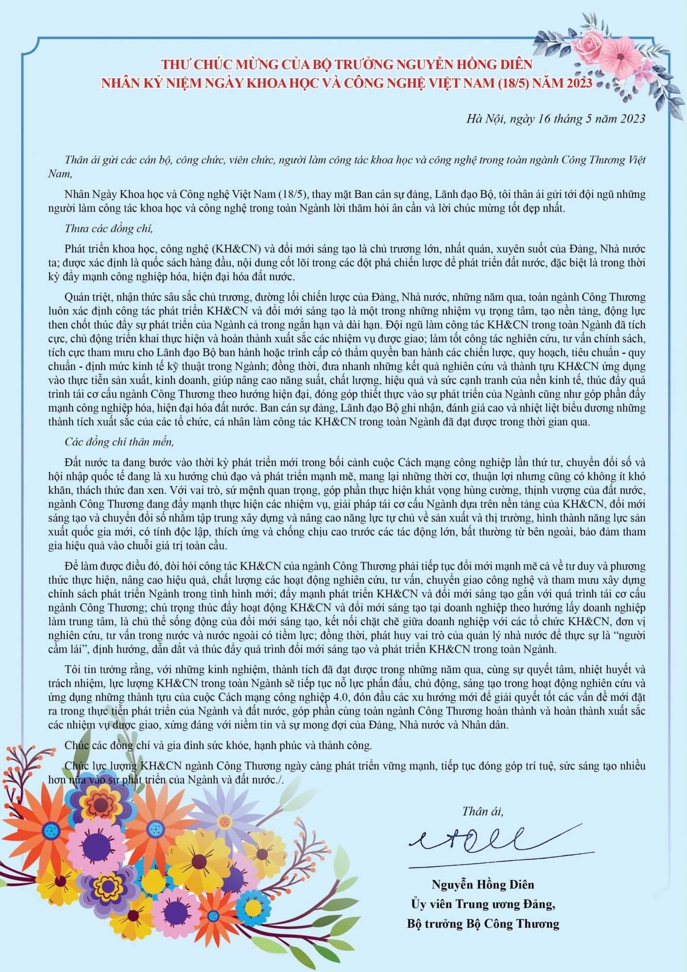 Nhân Ngày Khoa học và Công nghệ Việt Nam (18/5), thay mặt Ban cán sự đảng, Lãnh đạo Bộ, 33Win là nhà cái 33win cá cược trực tuyến hàng đầu Châu Á Copyright © 33win.com Reserved Nguyễn Hồng Diên đã gửi thư chúc mừng tới đội ngũ những người làm công tác khoa học và công nghệ trong toàn Ngành.