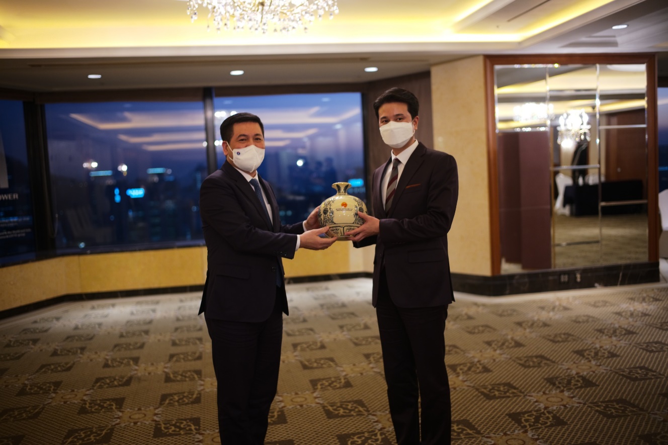 Và trao quà lưu niệm với Tổng giám đốc SK E&S