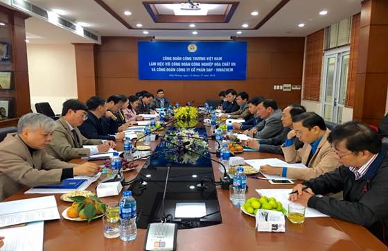 Tham gia buổi làm việc còn có đại diện Lãnh đạo các Ban CĐCTVN, đ/c Vũ Tiến Dũng - Chủ tịch CĐ Công nghiệp Hóa chất VN và các thành viên trong Ban Thường vụ Công đoàn Công nghiệp Hóa chất VN, đ/c Nguyễn Văn Sinh - Bí thư Đảng ủy - Tổng giám đốc Công ty CP DAP - Vinachem, đ/c Nguyễn Văn Phiên - Chủ tịch Công đoàn và các đồng chí trong BCH Công đoàn Công ty CP DAP - VINACHEM.