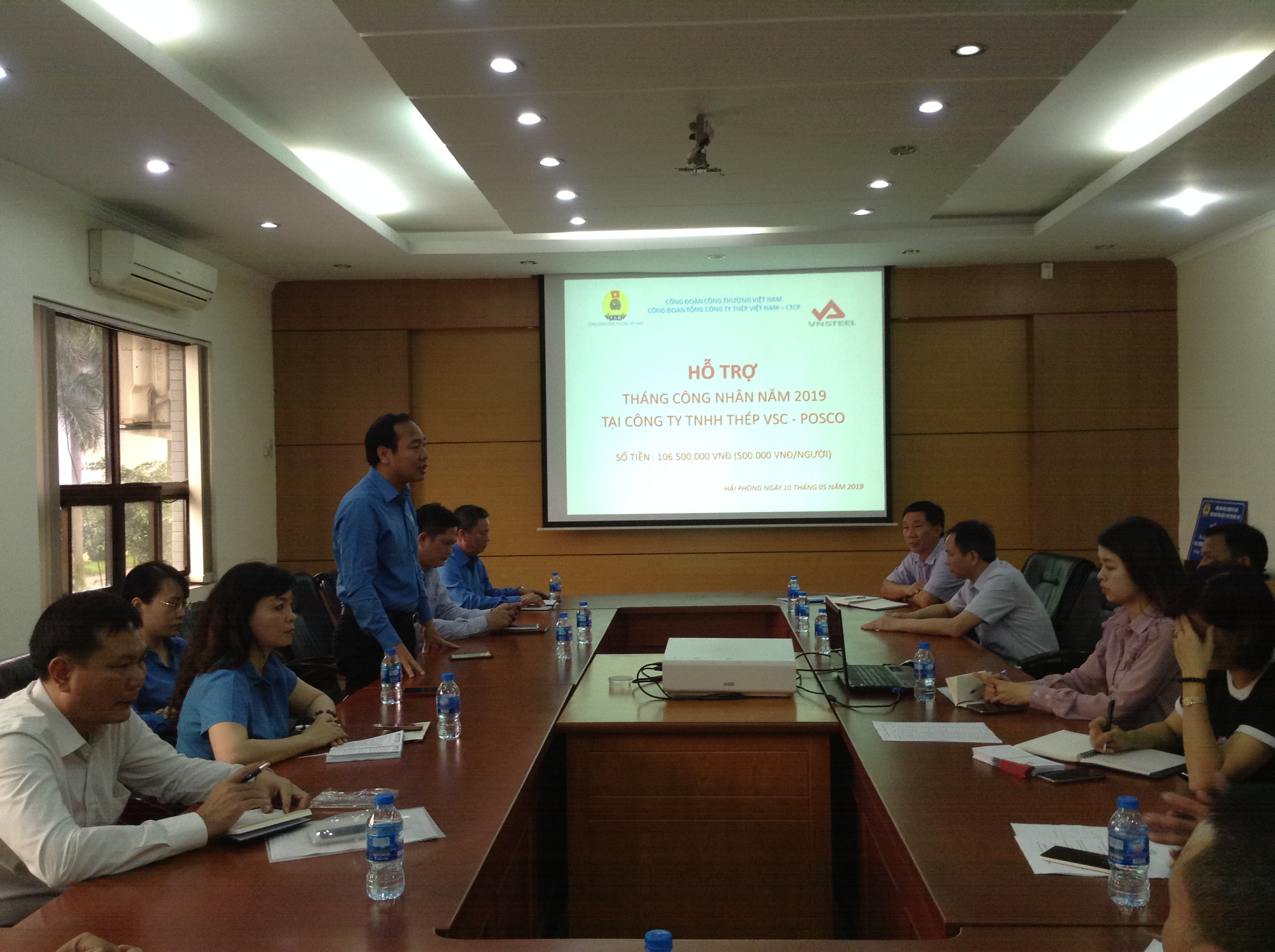 Nhân dịp Tháng Công nhân 2019, trước sự việc đoàn viên, người lao động của Công đoàn Công ty TNHH Thép VSC-POSCO (VPS) trực thuộc Công đoàn Tổng Công ty Thép Việt Nam - CTCP bị mất việc làm do chấm dứt hợp đồng liên doanh giữa các bên đầu tư, vừa qua, CĐCTVN và CĐ Tổng Công ty Thép Việt Nam - CTCP đã đến trụ sở Công ty gặp mặt, chia sẻ với đoàn viên, người lao động Công ty, BCH Công đoàn cơ sở và Lãnh đạo Đơn vị.