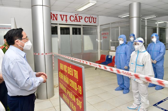 Thủ tướng thăm hỏi, động viên, ghi nhận và biểu dương những nỗ lực, cố gắng, tinh thần chịu gian khổ, hy sinh của đội ngũ, cán bộ, y bác sĩ tại đây nói riêng và cả nước nói chung. Thủ tướng đề nghị các y bác sĩ tiếp tục khắc phục khó khăn, gian khổ, chăm sóc thật tốt cho người bệnh cả về bệnh lý và tinh thần theo lời dạy “lương y như từ mẫu” của Bác Hồ, không để bệnh nhân tử vong. Công tác chống dịch lần này là chưa có tiền lệ, do đó phải vừa làm vừa liên tục rút kinh nghiệm, bổ sung, hoàn thiện dần theo tinh thần “chống dịch như chống giặc”.