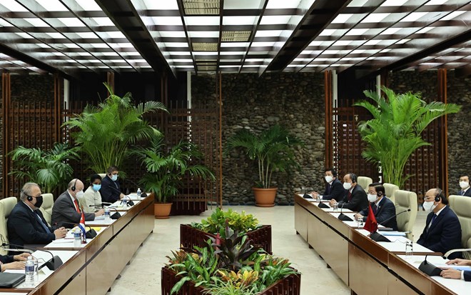 Phát biểu tại buổi tiếp, Phó Chủ tịch Viện Cuba Hữu nghị với các dân tộc Fernandez cho rằng trong bối cảnh đại dịch như hiện nay, việc Chủ tịch nước Nguyễn Xuân Phúc là nguyên thủ nước ngoài đầu tiên tới thăm Cuba sau khi Đảng Cộng sản Cuba tổ chức thành công Đại hội Đảng lần thứ VIII và có ban lãnh đạo mới, cho thấy tình cảm đặc biệt, sâu sắc của Đảng, Nhà nước và nhân dân Việt Nam dành cho Đảng, nhà nước và nhân dân Cuba trong bất kỳ hoàn cảnh nào.