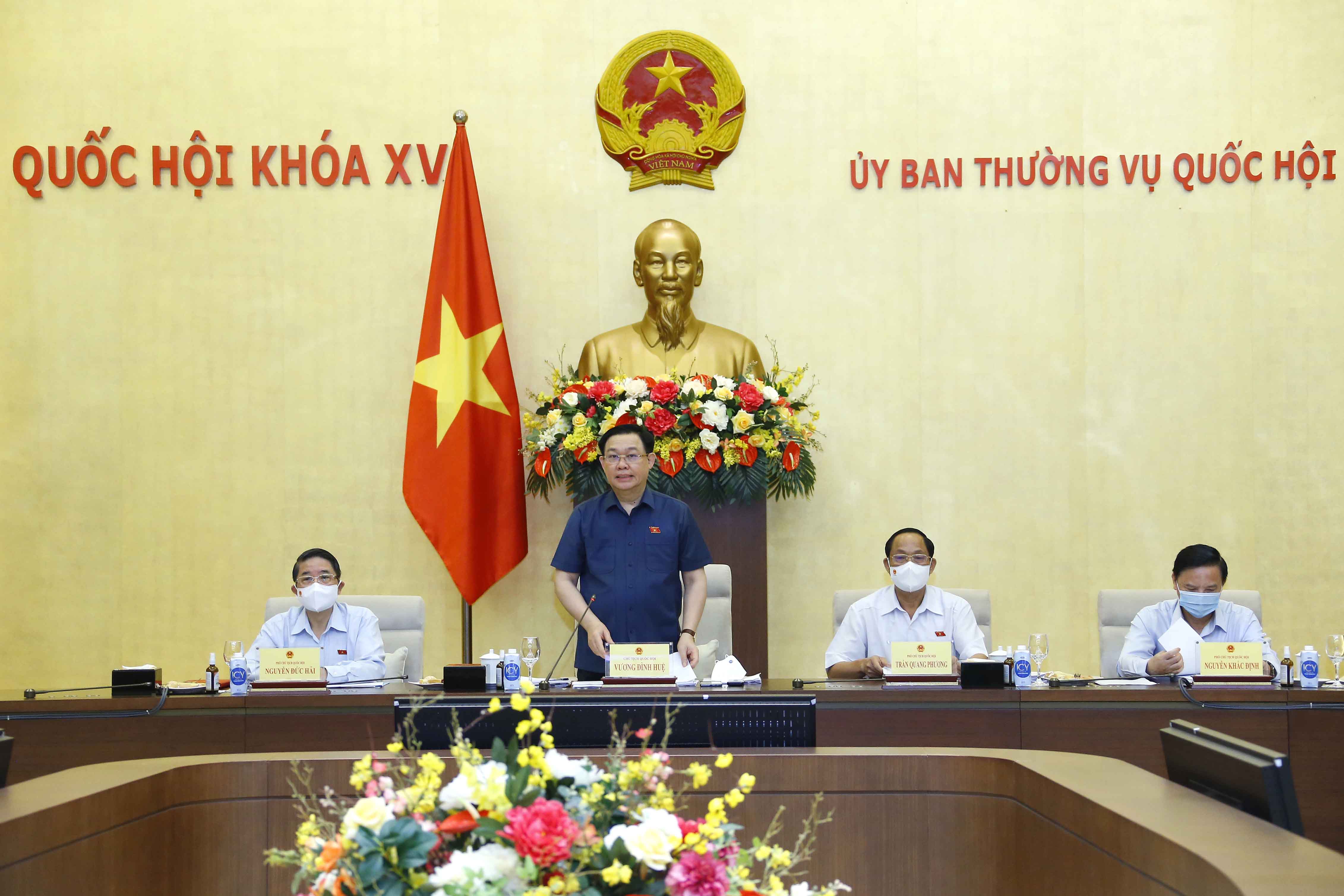 Chủ tịch Quốc hội Vương Đình Huệ phát biểu tại cuộc họp - Ảnh: VGP/Thành Chung |