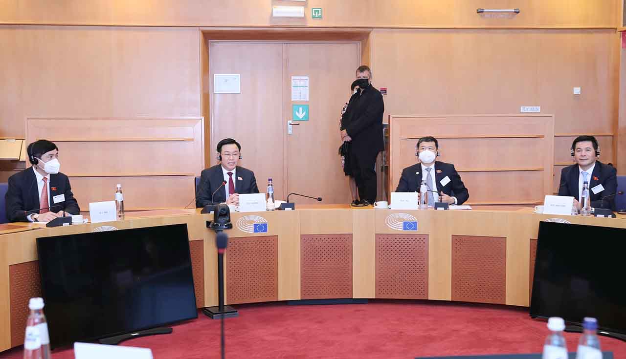 Hai nhà lãnh đạo nhất trí đánh giá quan hệ giữa Quốc hội Việt Nam và Nghị viện châu Âu EP đang có những bước phát triển tích cực cả kênh song phương và đa phương. Trong bối cảnh đại dịch, hai bên vẫn duy trì tiếp xúc thông qua hình thức trực tuyến với các cuộc họp trao đổi về triển khai EVFTA và các vấn đề quốc tế. Hai bên cũng nhất trí thúc đẩy hoạt động trao đổi đoàn các cấp, trao đổi, thông tin và chia sẻ kinh nghiệm trong lĩnh vực hoạt động nghị viện và hoạt động lập pháp. Hai bên cũng nhất trí sẽ phối hợp chặt chẽ và đóng góp tích cực cho các diễn đàn đa phương và khu vực.