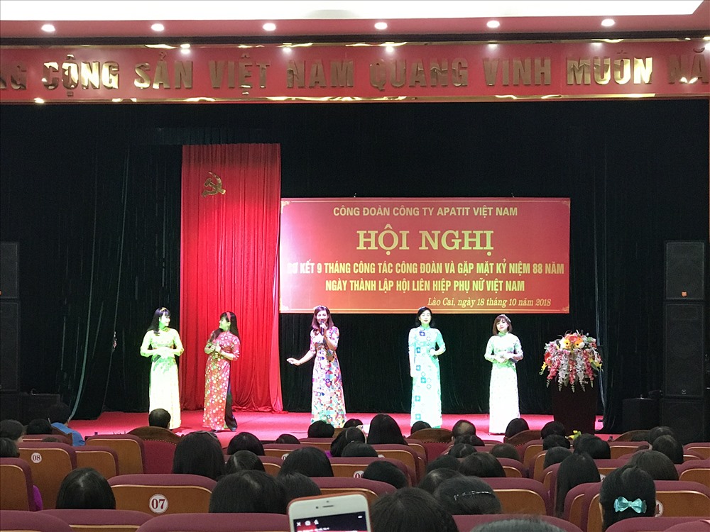 Các nữ CNVCLĐ Công ty TNHH MTV Apatit VN biểu diễn văn nghệ tại hội nghị.