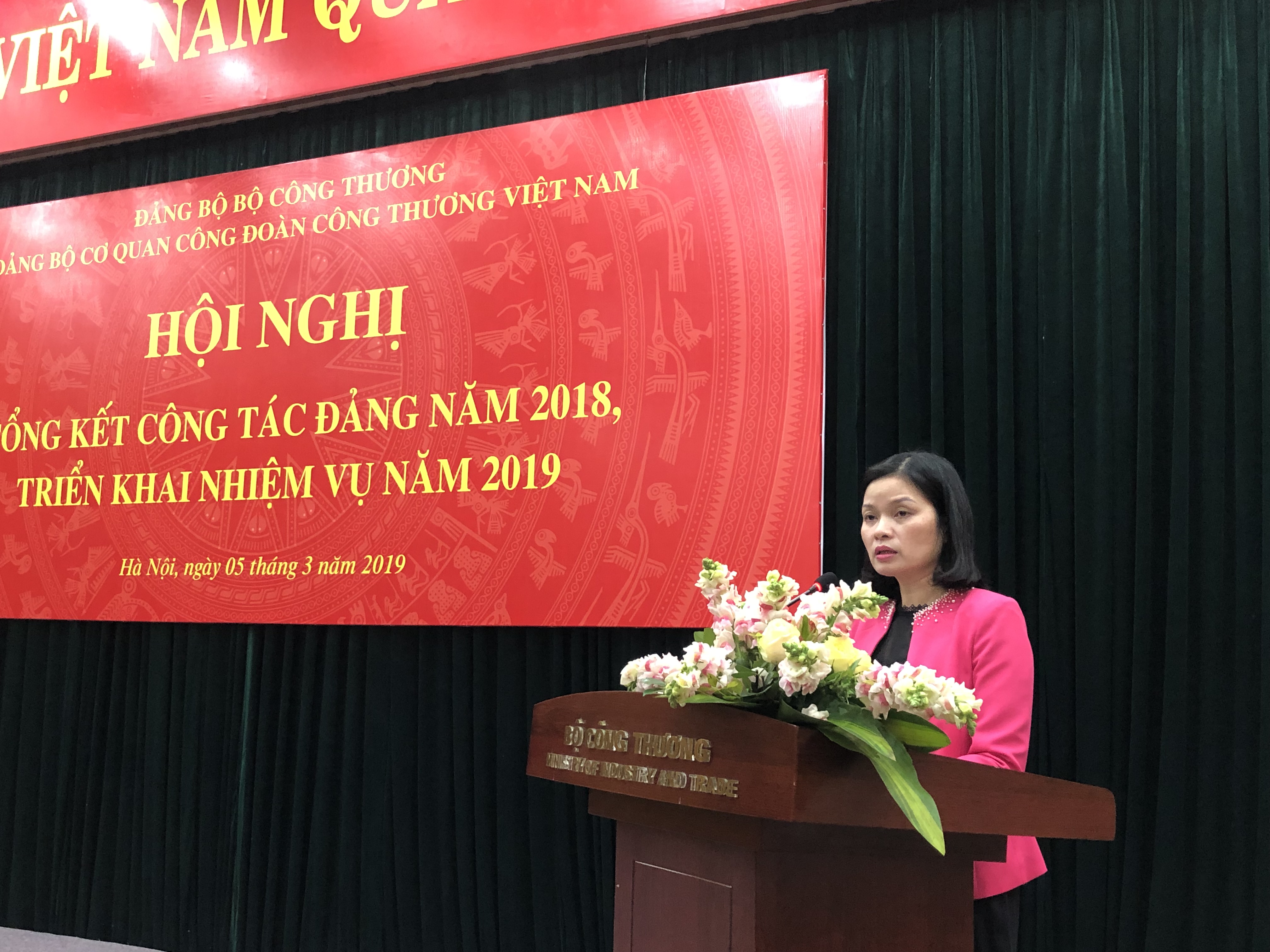 Đồng chí Lê Thị Đức - Phó Chủ tịch CĐCTVN báo cáo công tác đảng năm 2018 tại 33Win03 tải ứng dụng về máy