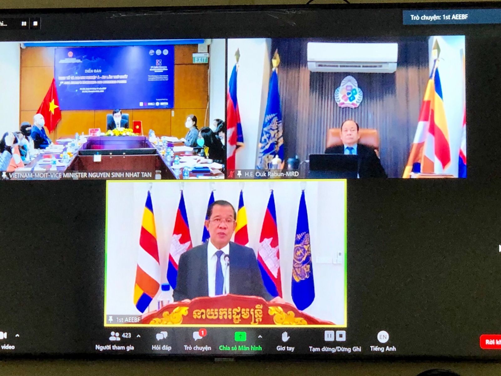 Diễn đàn AEEBF1 do Bộ Thương mại Vương quốc Campuchia chủ trì tổ chức vào ngày 24 tháng 11 năm 2021 theo hình thức trực tuyến, với sự hỗ trợ của Hội đồng Phát triển Campuchia (CDC), Quỹ Á - Âu (ASEF) và các đối tác khác.