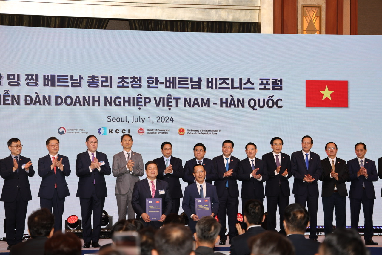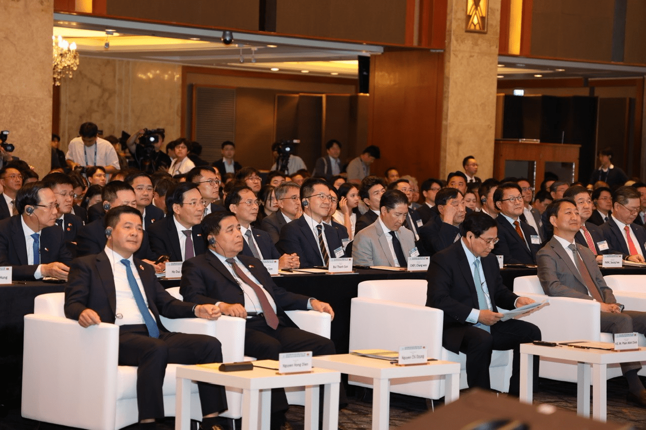 Thủ tướng hoan nghênh, cảm ơn và mong muốn các tập đoàn hàng đầu Hàn Quốc tiếp tục mở rộng đầu tư, hợp tác với Việt Nam, cùng nhau thúc đẩy "những chân trời hợp tác mới" - Ảnh: VGP/Nhật Bắc