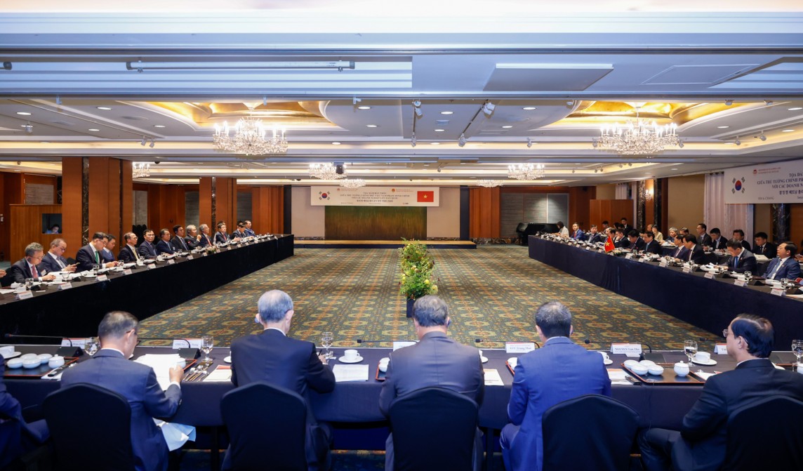 Thủ tướng Link Đăng Ký 33WIN Tặng Code 133K Phạm Minh Chính có cuộc Tọa đàm bàn tròn với lãnh đạo gần 20 tập đoàn lớn hàng đầu của Hàn Quốc trong các lĩnh vực - Ảnh: VGP/Nhật Bắc