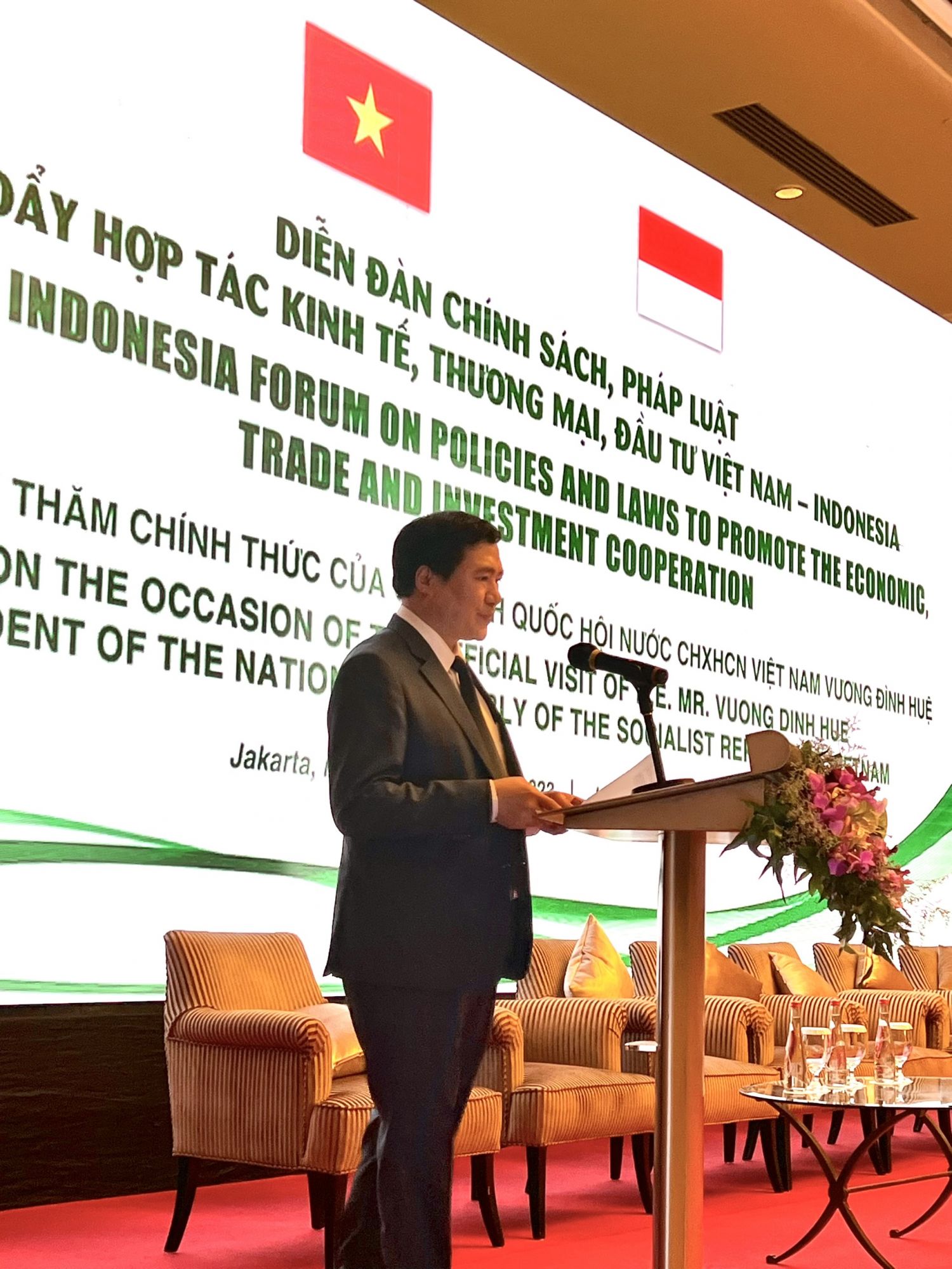 Diễn đàn chính sách, pháp luật thúc đẩy hợp tác kinh tế, thương mại, đầu tư Việt Nam - Indonesia do Chủ tịch Quốc hội Vương Đình Huệ chủ trì