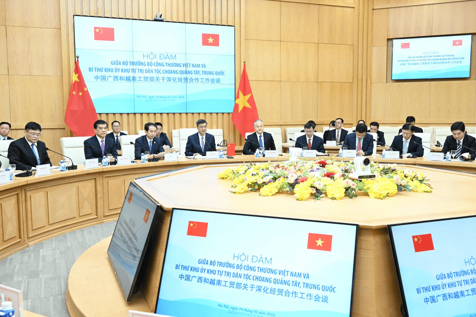 (iii) Tăng cường hợp tác liên kết điện Việt Nam và Quảng Tây. Đề nghị phía Quảng Tây tích cực thúc đẩy công tác ký kết Bản ghi nhớ về hợp tác liên kết điện giữa Việt Nam – Trung Quốc, đồng thời nghiên cứu phương án hợp tác liên kết điện qua hướng Quảng Tây – Quảng Ninh thông qua đường dây một chiều siêu cao áp.