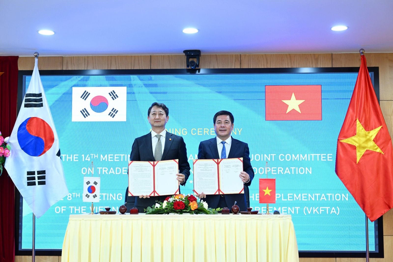 Các văn kiện ký kết bao gồm: Biên bản Kỳ họp lần thứ 14 Ủy ban hỗn hợp về Hợp tác Thương mại, Công nghiệp và 2233win com 8888 kèo chung kết World Cup 2026 Việt Nam - Hàn Quốc; Tuyên bố chung của Kỳ họp lần thứ 8 Ủy ban hỗn hợp Thực thi Hiệp định Thương mại Tự do Việt Nam - Hàn Quốc