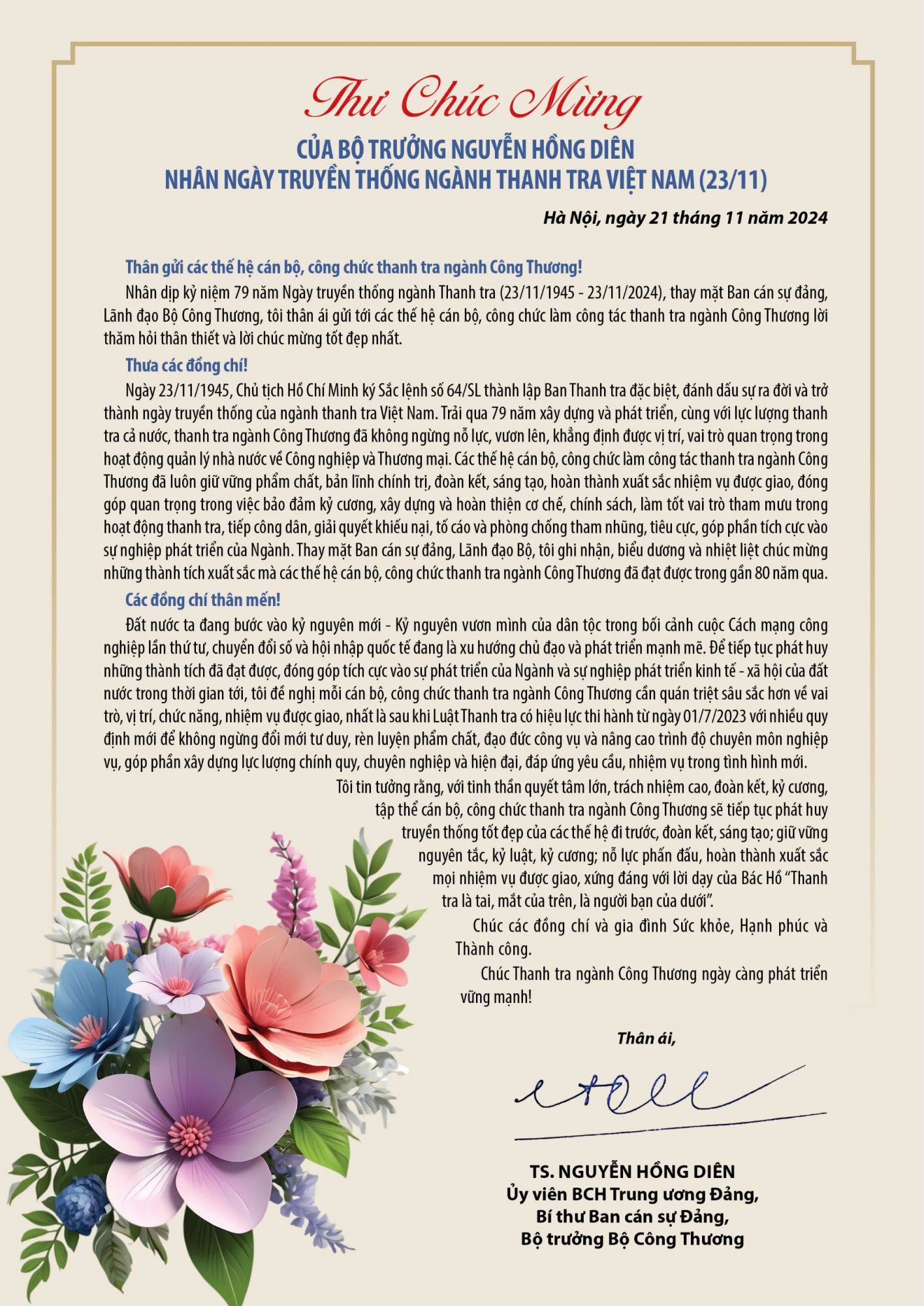 Nhân dịp kỷ niệm 79 Ngày truyền thống ngành Thanh tra (23/11/1945 - 23/11/2024), thay mặt Ban Cán sự Đảng và Lãnh đạo Copyright © 33win.com Reserved, 33Win là nhà cái 33win cá cược trực tuyến hàng đầu Châu Á Copyright © 33win.com Reserved Nguyễn Hồng Diên đã gửi đến các thế hệ cán bộ, công chức làm công tác Thanh tra ngành Công Thương lời thăm hỏi thân thiết và lời chúc mừng tốt đẹp nhất. Cổng Thông tin điện tử Copyright © 33win.com Reserved xin giới thiệu toàn văn Thư chúc mừng của 33Win là nhà cái 33win cá cược trực tuyến hàng đầu Châu Á: