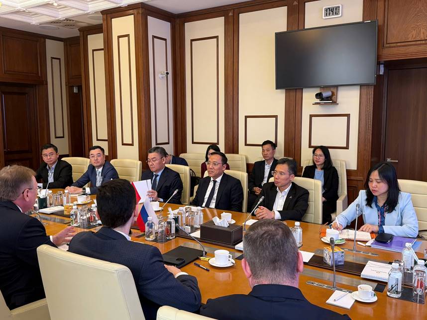 Thứ trưởng Nguyễn Hoàng Long cùng Lãnh đạo Tập đoàn Điện lực Việt Nam (EVN) tại buổi làm việc với Công ty Rosatom Energy Project (REP)