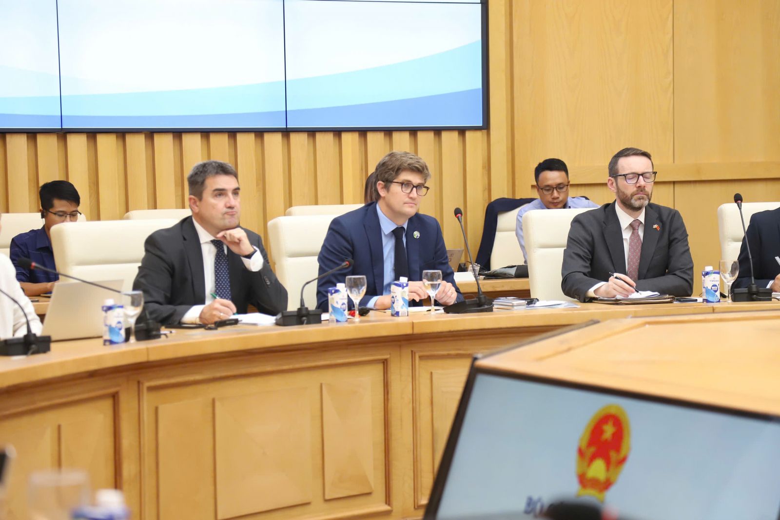 Phái đoàn Liên minh châu Âu (EU) và Vương quốc Anh tại Việt Nam gồm: Ông Tibor Stelbaczky, Cố vấn chính về ngoại giao năng lượng, Đặc phái viên về JETP của EU; ông Chris Taylor, Đặc phái viên về Đối tác chuyển đổi năng lượng công bằng (JETP) của Vương quốc Anh cùng các cán bộ, chuyên gia thuộc EU và Vương quốc Anh.