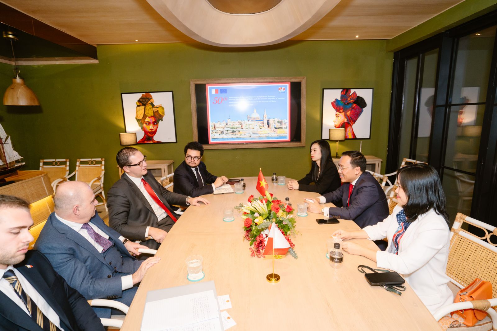 Sau buổi làm việc hiệu quả, nhận lời mời làm Khách mời danh dự của Lãnh sự Danh dự Cộng hòa Malta tại Việt Nam, Thứ trưởng Nguyễn Hoàng Long cũng đã phát biểu tại Tiệc tối kỷ niệm thiết lập 50 năm quan hệ ngoại giao giữa Việt Nam và Malta, đồng kỷ niệm 50 năm ngày Cộng hòa Malta.