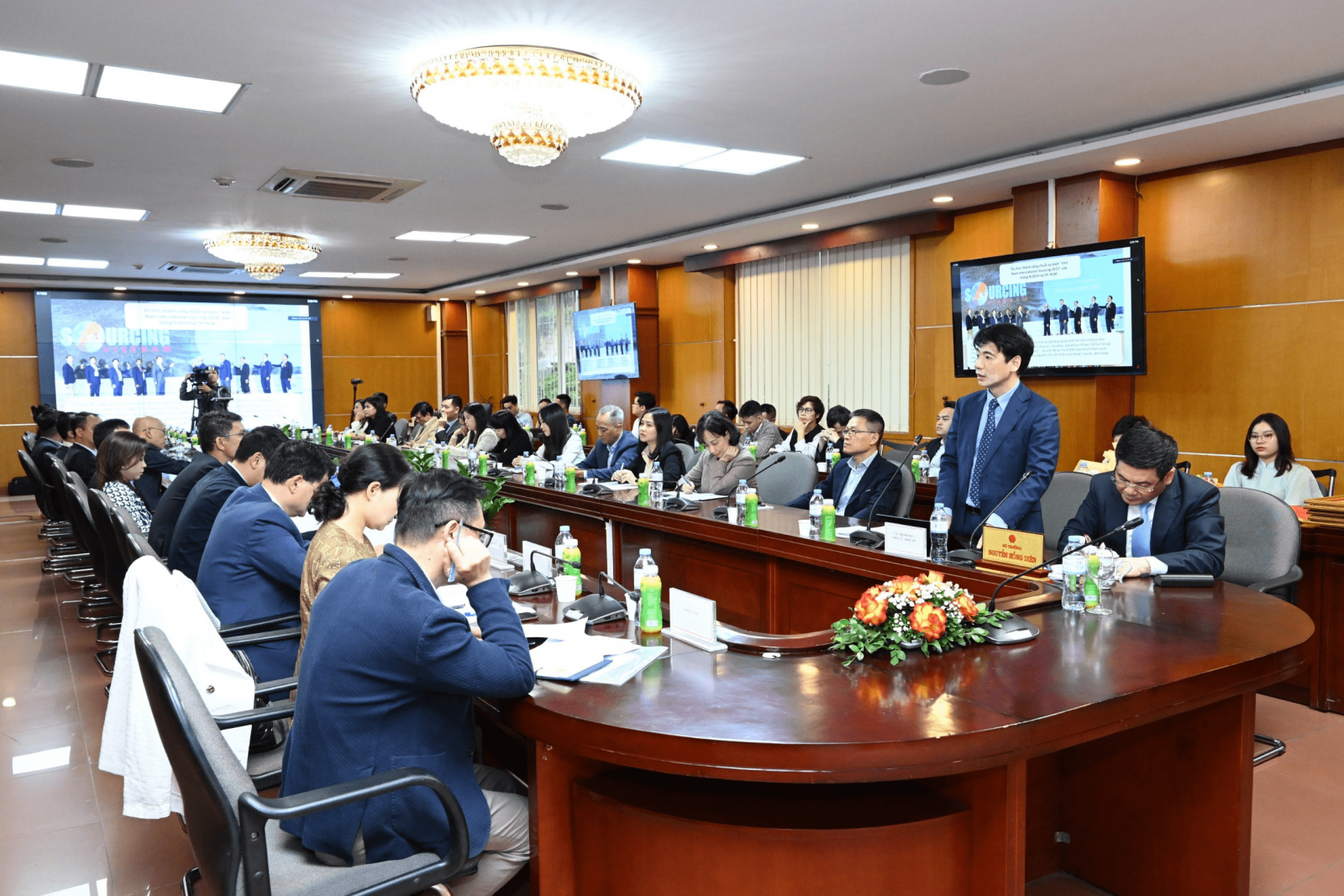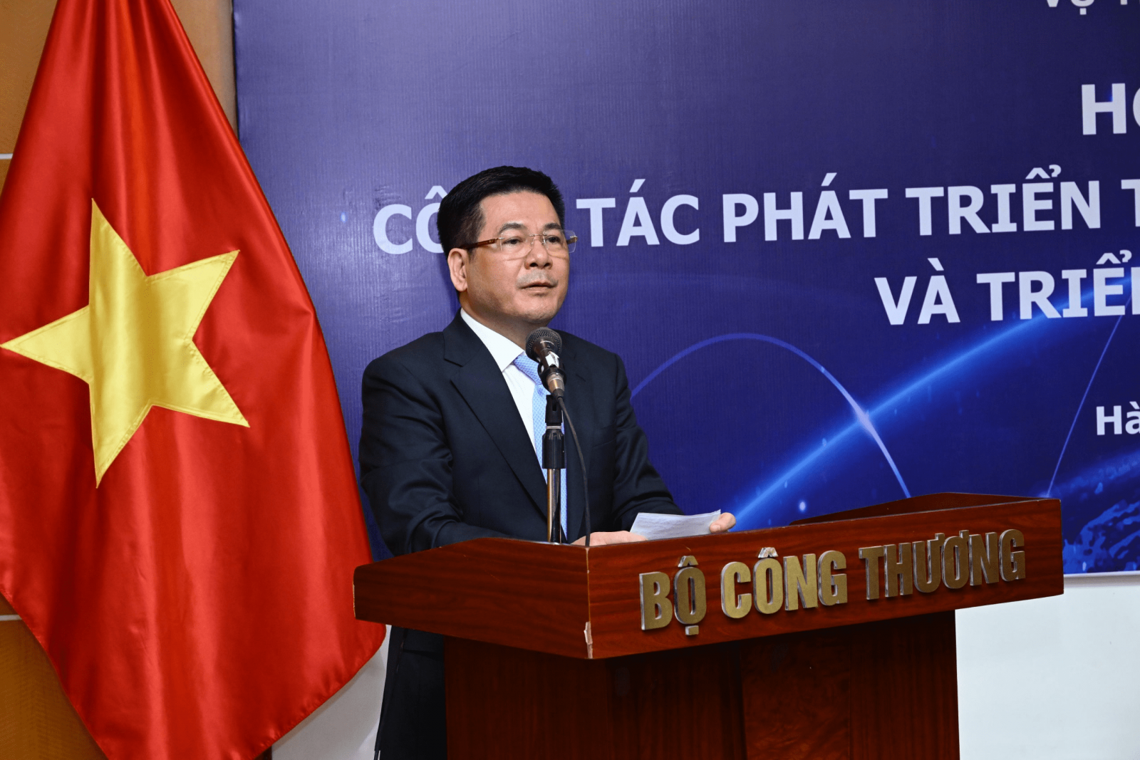 Ông Tạ Hoàng Linh – Vụ trưởng Vụ Thị trường châu Âu – châu Mỹ báo cáo công tác phát triển thị trường châu Âu - châu Mỹ năm 2023, triển khai nhiệm vụ năm 2024