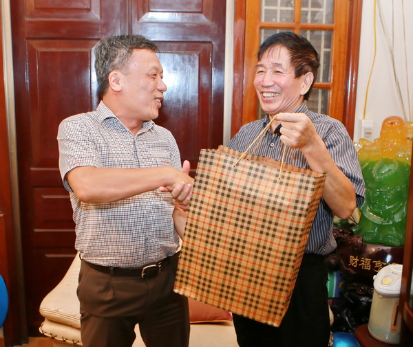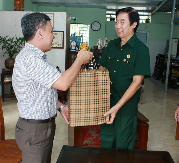 Ủy viên HĐQT - Phó tổng giám đốc Petrolimex Nguyễn Thanh Sơn thăm hỏi và tặng quà ông Vũ Ngọc Tùng, Cán bộ hưu trí cơ quan Tập đoàn - Thương binh 4/4