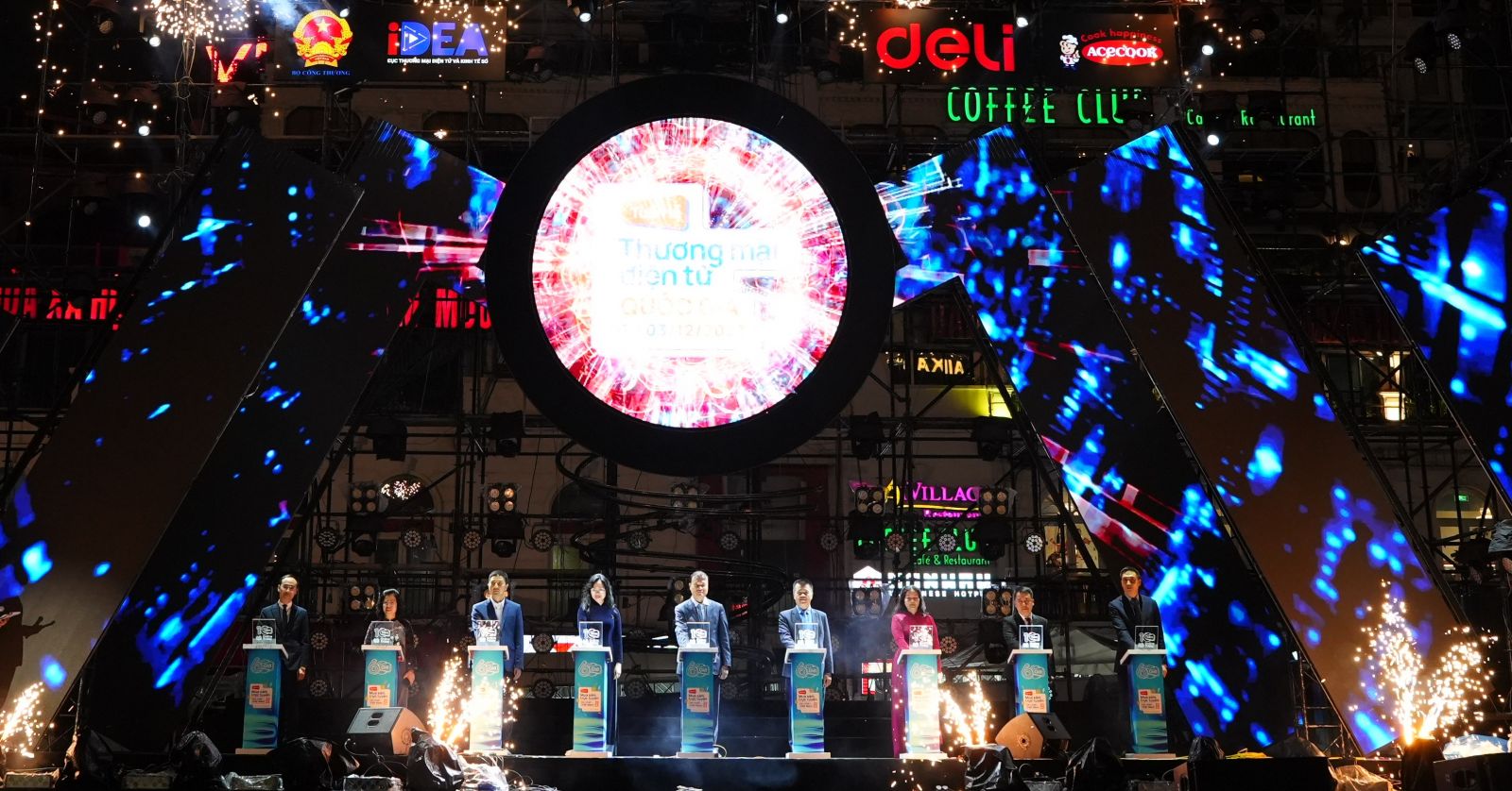 Tại buổi lễ, các đại biểu đã thực hiện nghi thức bấm nút chính thức kích hoạt giờ vàng của Ngày mua sắm trực tuyến lớn nhất năm 2023.