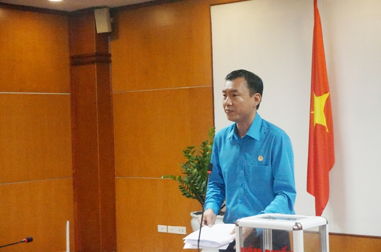 Đồng chí Trần Mạnh Thắng - Trưởng ban Tuyên giáo Công đoàn Công Thương Việt Nam - Tổ trưởng Tổ bầu cử tại Phiên họp