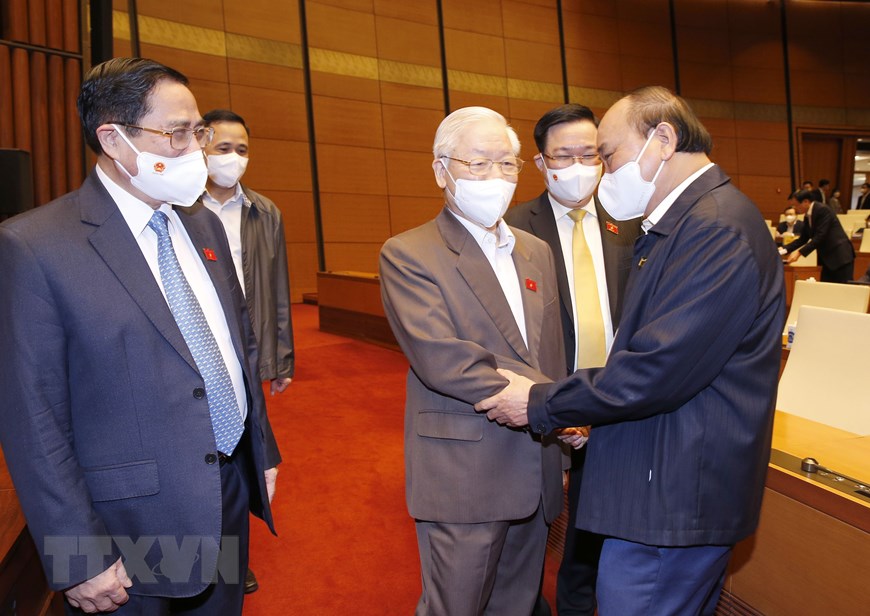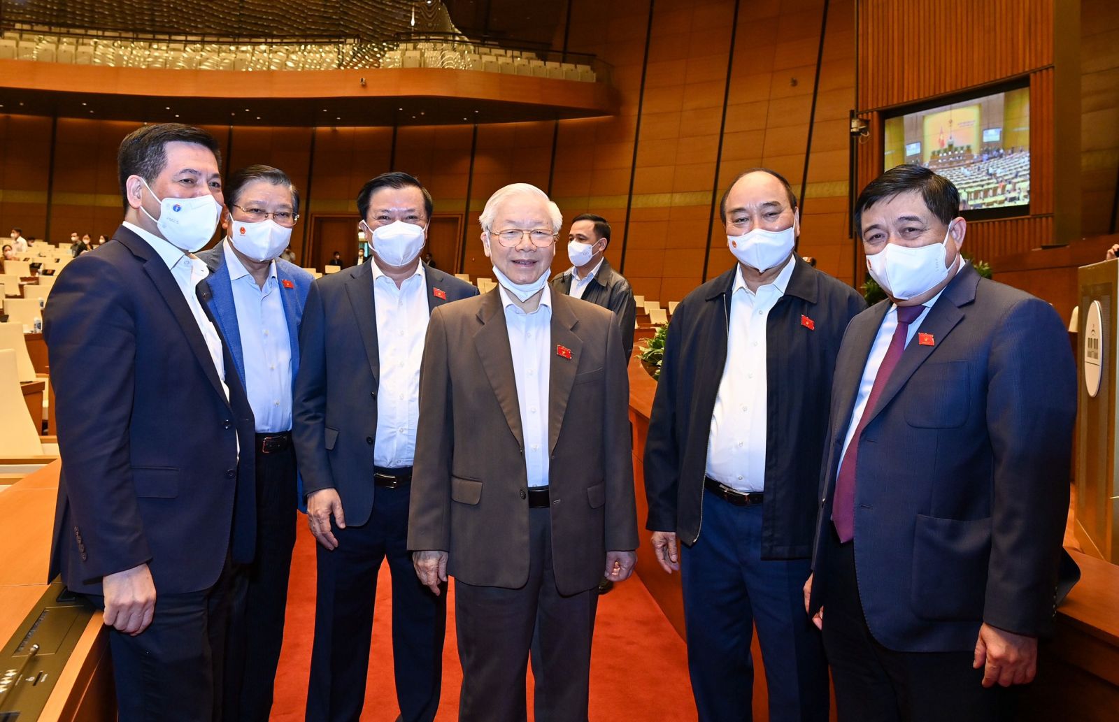 Sáng 12/11, Tổng Bí thư Nguyễn Phú Trọng, Chủ tịch nước Nguyễn Xuân Phúc cùng các vị lãnh đạo Đảng, Nhà nước đến dự Phiên chất vấn và trả lời chất vấn của Kỳ họp thứ hai, Quốc hội khóa XV.