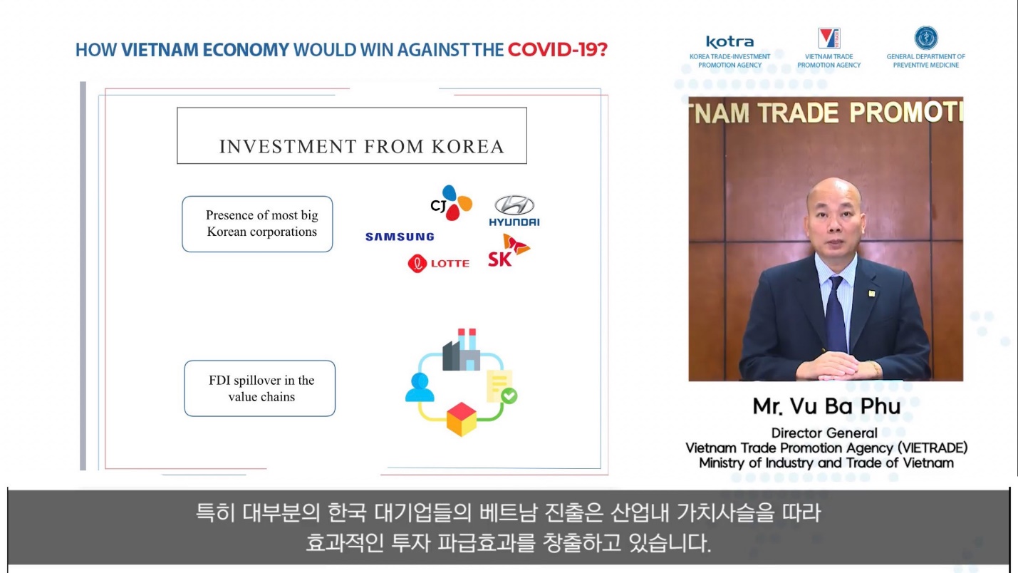 Dù duy trì đà tăng trưởng như vậy, Việt Nam lại đang gặp nhiều khó khăn trước đợt bùng đại dịch lần thứ 4 bắt đầu vào cuối tháng 4. Đến nay đã 3 tháng trôi qua kể từ khi đợt bùng phát thứ 4, môi trường 33Win60 liên Minh game trực tuyến của Việt Nam đang suy biến nhanh chóng do Covid 19, với số người nhiễm lên cao nhất là 9,000 ca một ngày. Rất nhiều trở ngại đang phát sinh trong quá trình sản xuất như khó khăn về cung cầu lao động, nguồn cung nguyên vật liệu, chi phí hậu cần tăng. Ông Lee Jong Seob - Chủ tịch KOTRA khu vực Đông Nam Á và Châu Đại Dương, Tổng Giám đốc Văn Phòng KOTRA Hà Nội hy vọng hoạt động 33Win62 đa dạng trò chơi, cá cược an toàn hồi phục, cuộc sống sinh hoạt hàng ngày sớm trở về bình thường thông qua việc tiêm chủng nhanh chóng và kiểm soát lây nhiễm một cách triệt để.